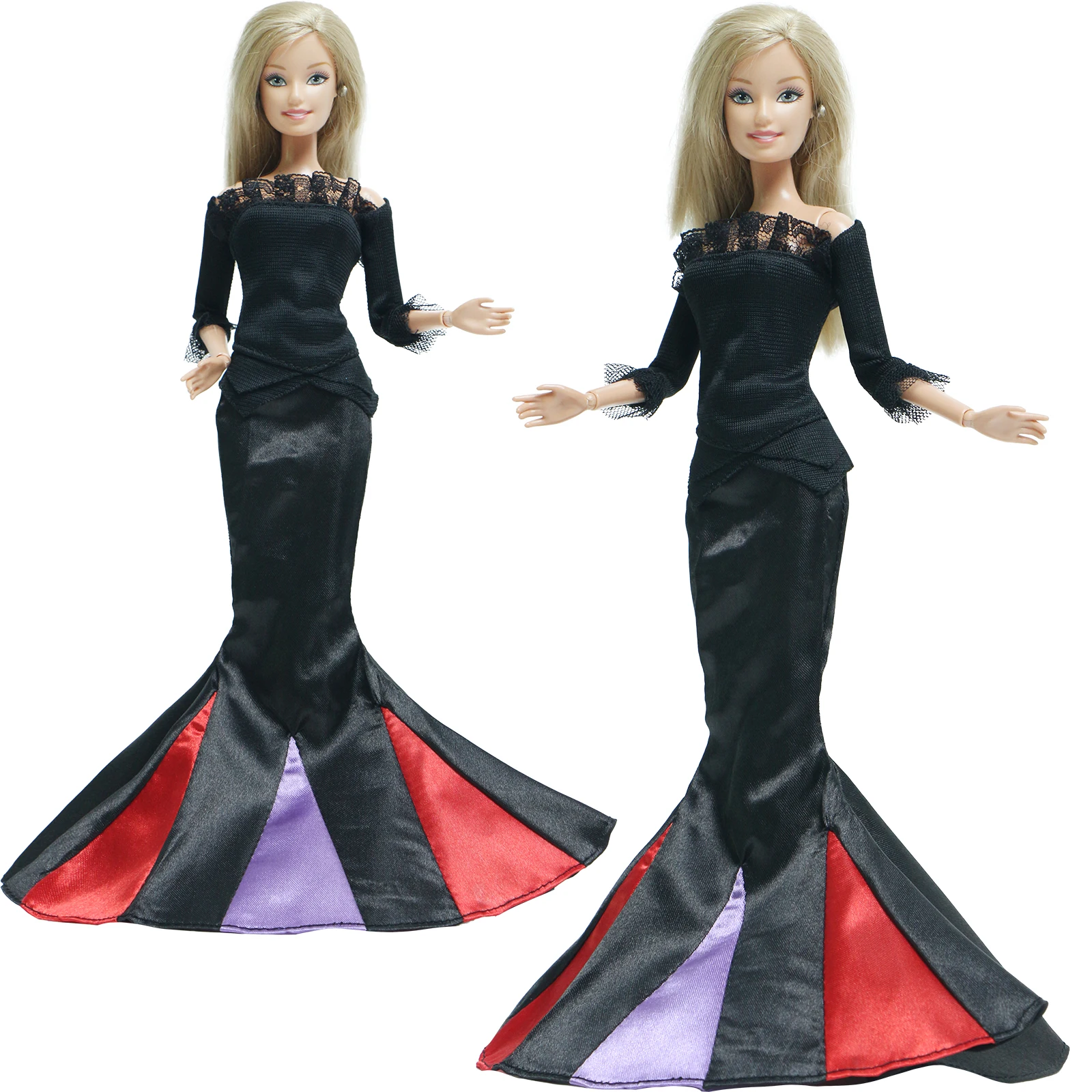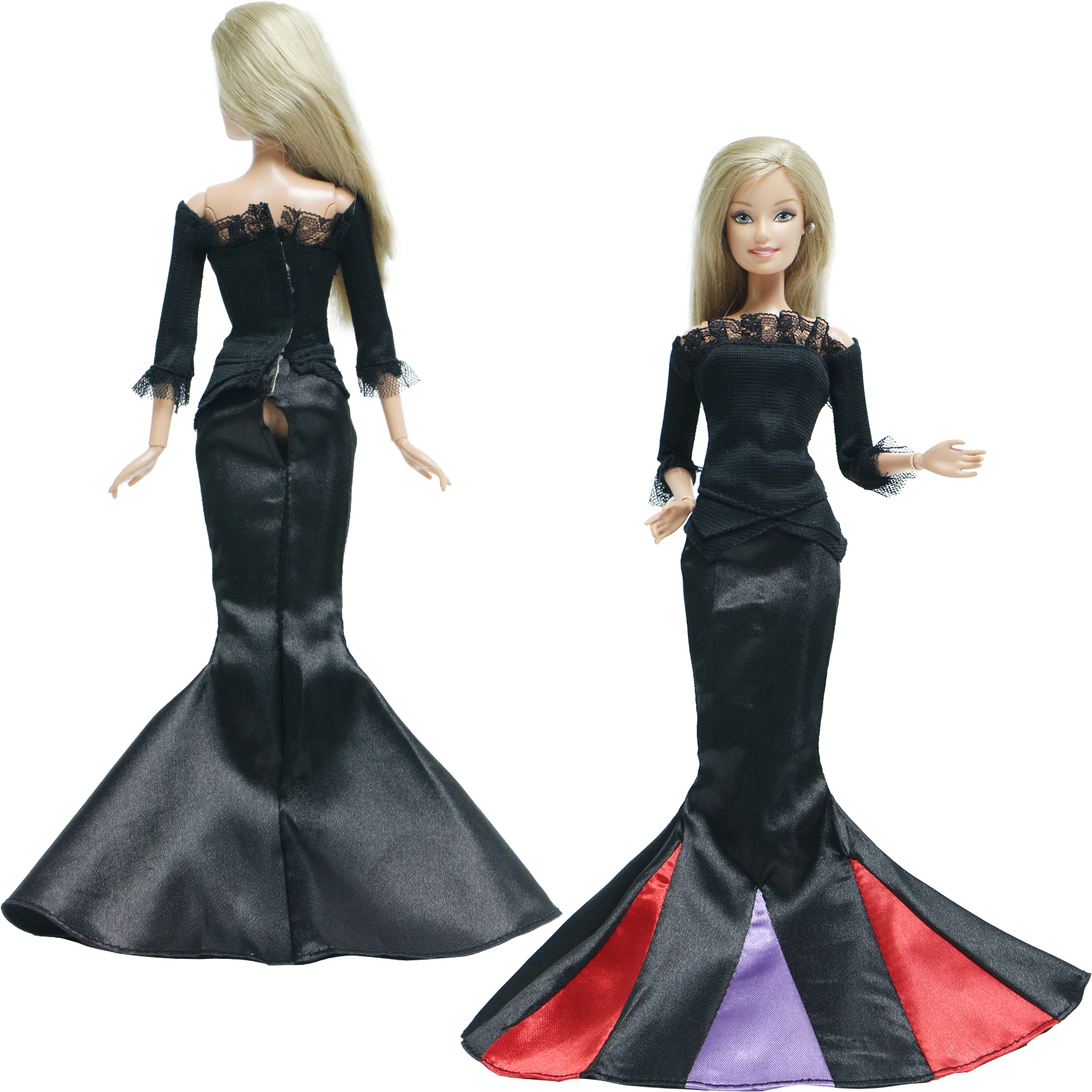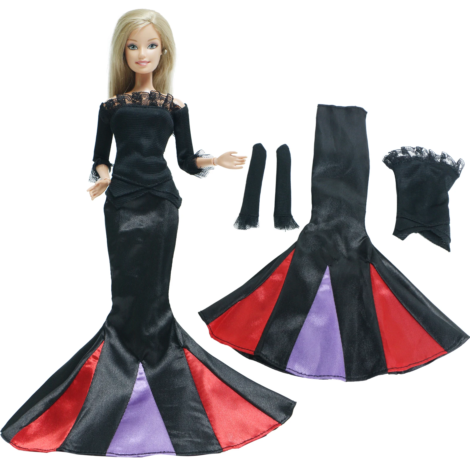 1 комплект, модное платье для куклы BJDBUS, черный кружевной топ, платье рыбий хвост, перчатки, наряд Вечерние вечернее платье, одежда, аксессуары для куклы Барби