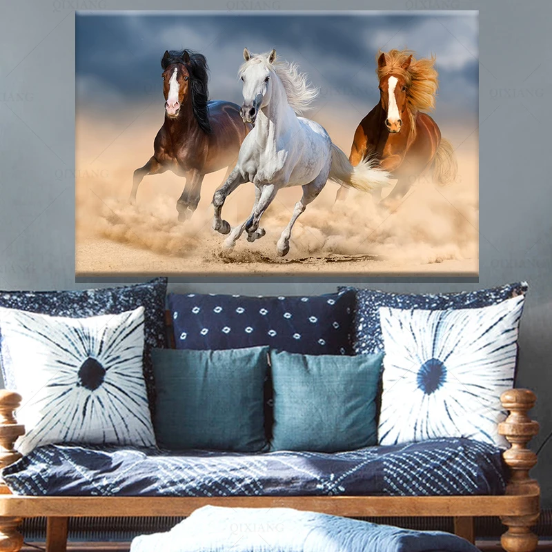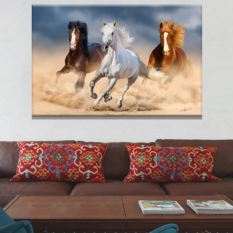Современная Картина на холсте бегущая лошадь Печать животных Плакат Настенная картина для гостиной дома офиса Декор