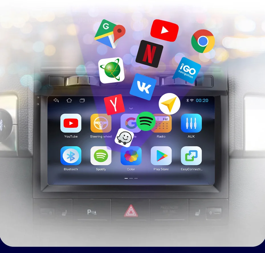 > 9 дюймов 2.5D емкостный Экран + 4 ядра 1,2 ГГц Процессор + DDR3 1 ГБ/2 ГБ/4 ГБ флэш-памяти (опционально) + 16 Гб/32 ГБ/64 Гб памяти (опционально) + встроенный Wifi (4G опционально) + gps-навигация (карта Бесплатное обновление) + управление рулевым колесом + зеркальная связь + Bluetooth-Совместимость + Встроенный микрофон + FM/AM + RDS + Поддержка USB DVR ADAS + Поддержка Европейской DAB функции + 1080P видео воспроизведение + HD 1024*600 + Поддержка системы контроля давления в шинах + Поддержка голоса Управление > Быстрая доставка из Китая, России, Испании или Польши со склада в течение 2 дней и бесплатный возврат в течение 15 дней. > 7*24 часов обслуживанияВ Awesafe наша миссия упорно работает, чтобы предоставить вам надежный и замечательный Автомобильный мультимедийный плеер/автомобильное радио, инновационное оборудование и программное обеспечение, а также бесплатные обновления для прошивки, программного обеспечения, GPS навигационные карты.