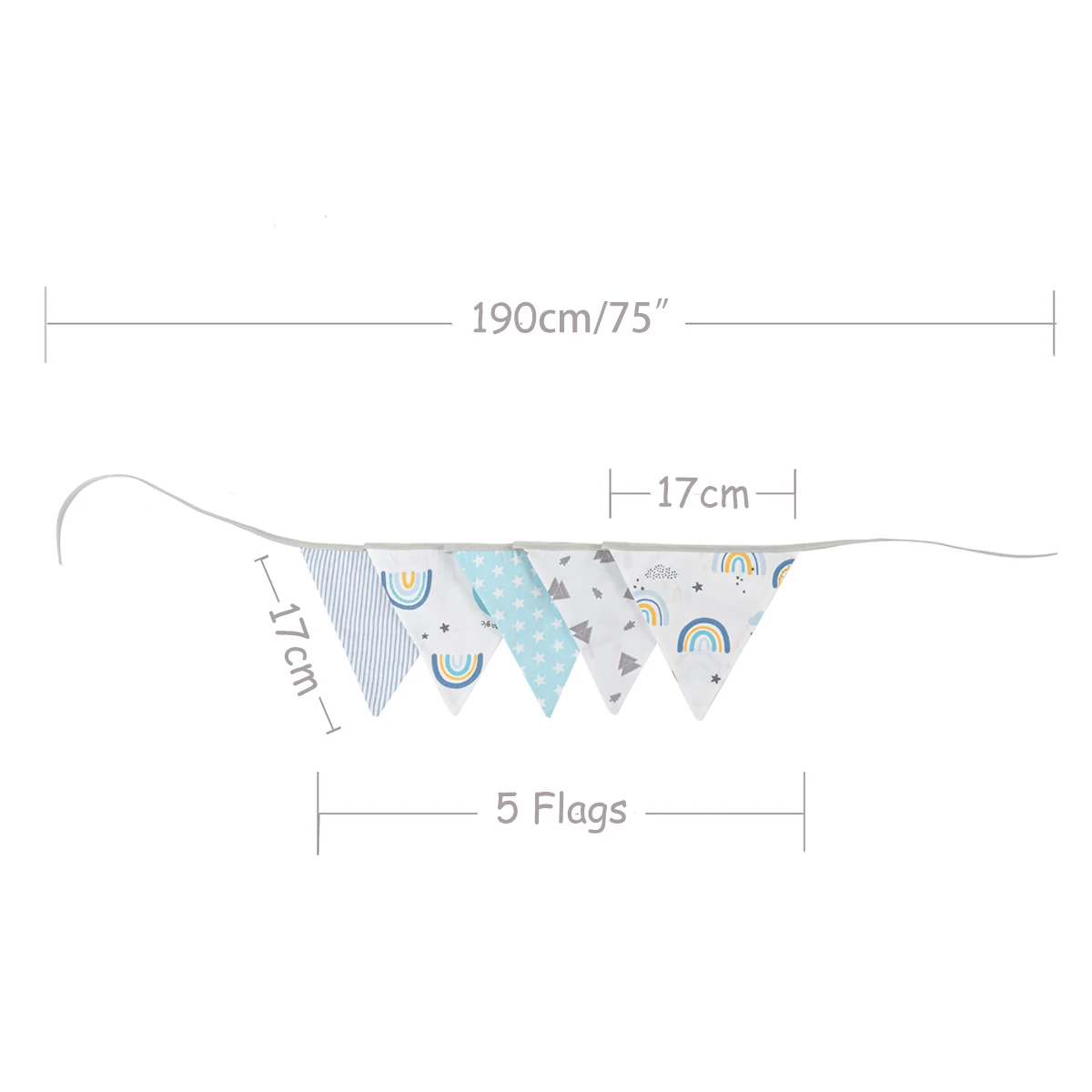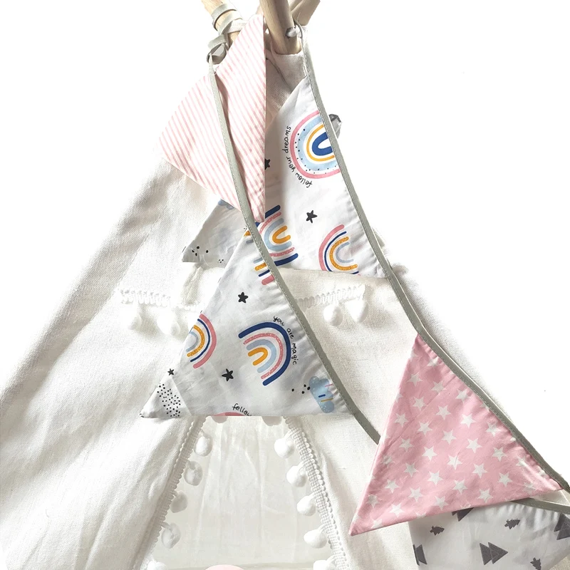Гирлянда из 100% хлопчатобумажной ткани с флагом, баннер, милый Радужный дизайн для вечеринкидетской комнаты, голубая для детей