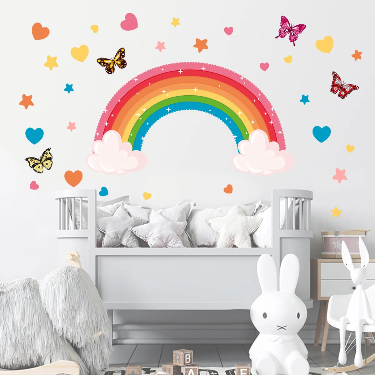 Съемная Радужная искусственная ПВХ бабочка Сердце Звезда виниловая настенная наклейка для детской комнаты