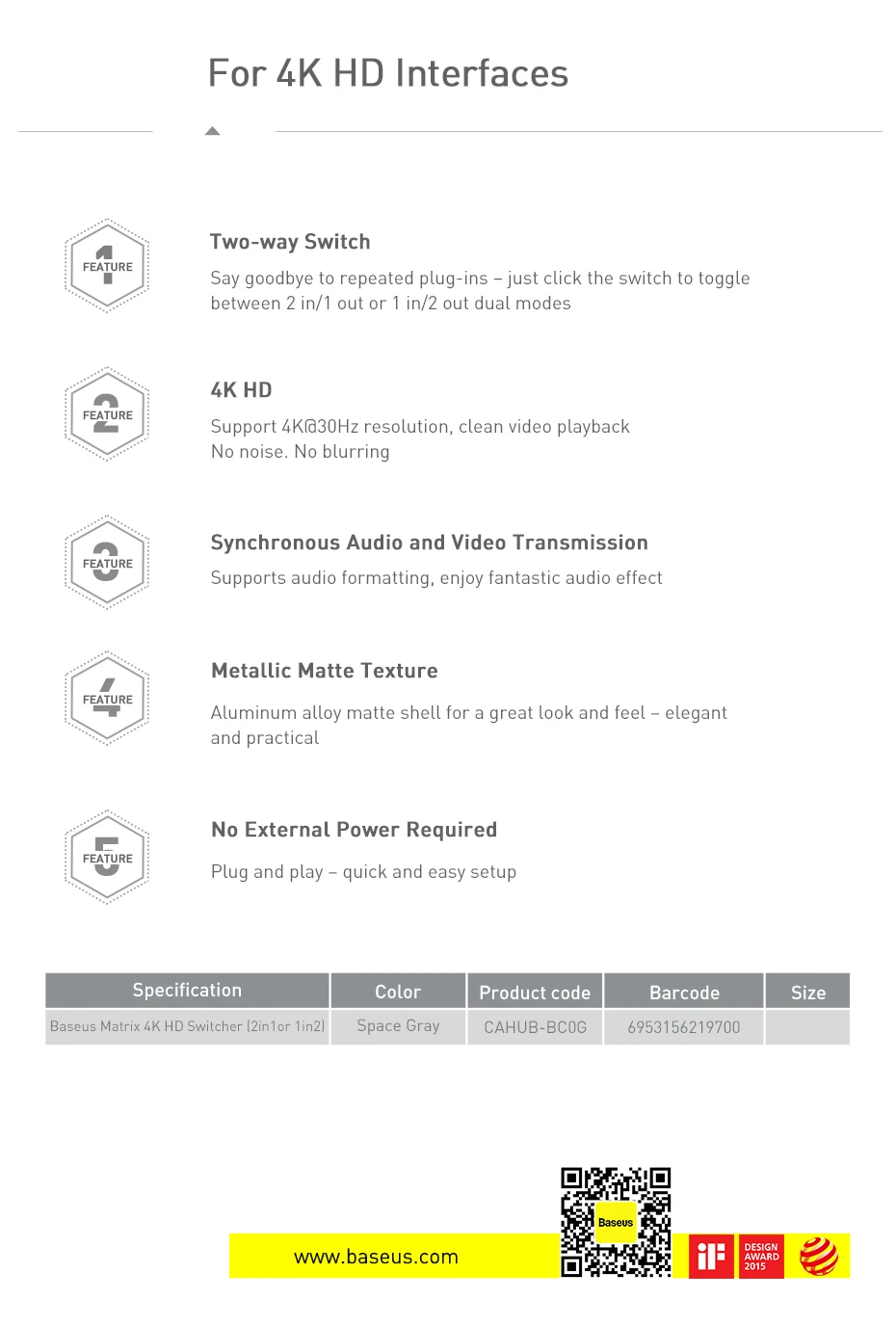 Feature 4for switch HD Switcher, Baseus HDMI-compalite