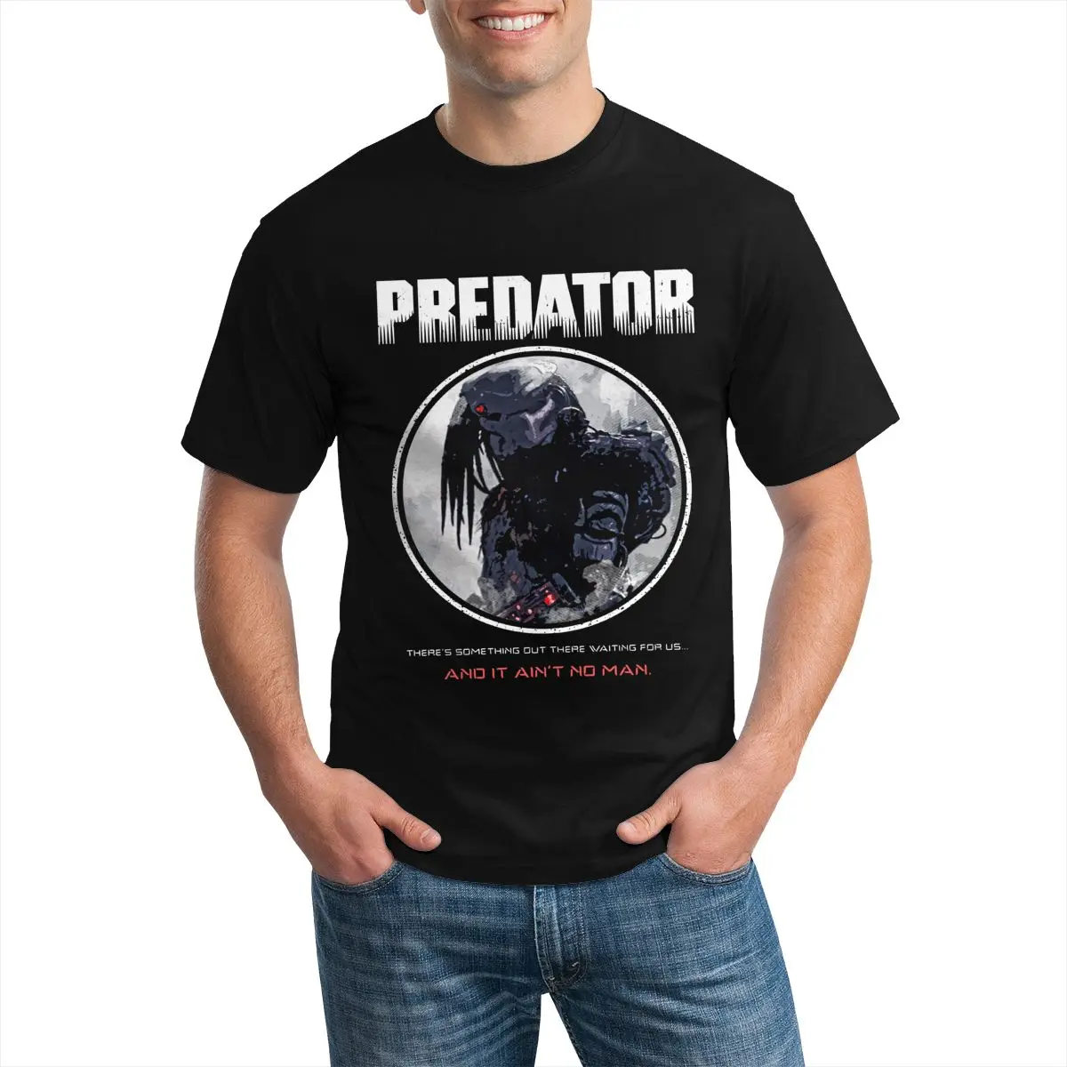 Футболка с принтом Хищник, Повседневная Уличная футболка с принтом фильмы ужасов из 100% хлопка, Мужская футболка с короткими рукавами, 4xl