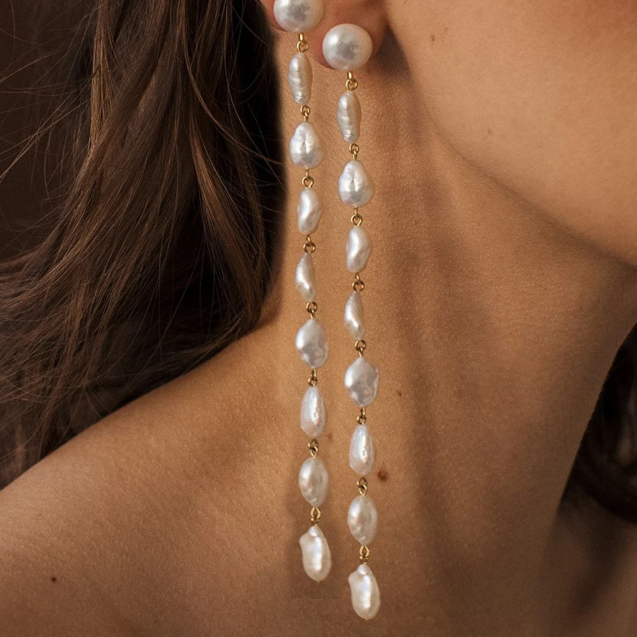 Необычные классические аксессуары, элегантные серьги в виде капель, серьги в виде колонн с пресноводным жемчугом, длинные серьги для женщин