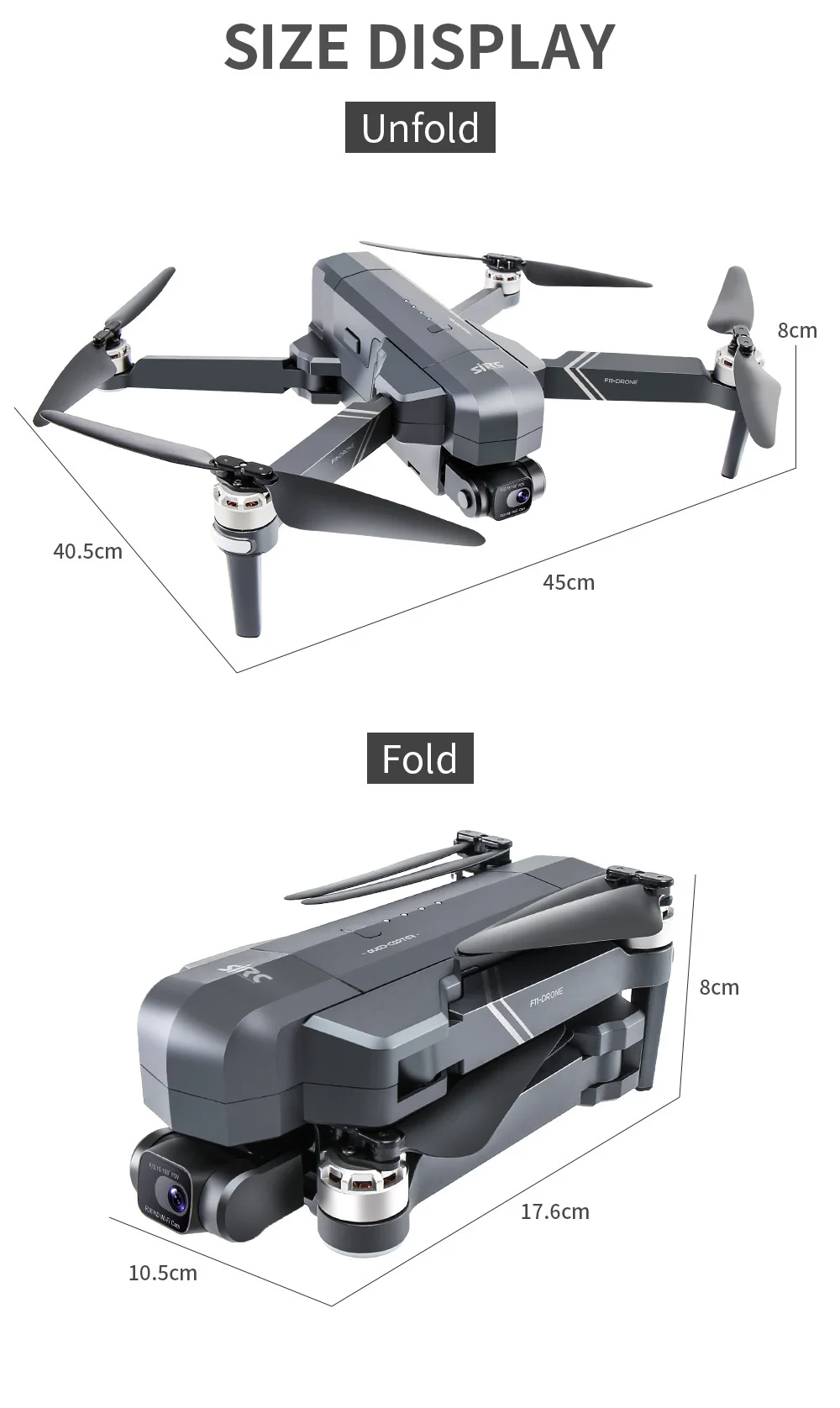Продукт:F11S4K ProЦвет: серебристо-серыйЧастота: 2,4G/5,8GАккумулятор дрона: 11,1 В 2500 мАчРасстояние управления:3000 м(Открытый и свободный, зависит от окружающей среды и мобильного устройства)Расстояние передачи изображения Wifi:3000 м(Открытый и свободный, зависит от условий и мобильных устройств)Время полета: около 26-28 минутВремя зарядки: около 4,5 часовUsb-зарядка: 5 В/3 АРазмер продукта в разложенном виде: 450x405x80мм, в сложенном виде: 176x105x80ммВес изделия: 585 гПульт дистанционного управления Управление Батарея: 3,7 V 300mAhВремя зарядки передатчика: около 25 минВремя работы передатчика: около 11 часовКамера: 2-оси электронная стабилизация Gimbal настоящий 4K КамераОбъектив камеры: FOV:100 °Разрешение фото: 3840*2160Разрешение видео: 1280x720PРазрешение фото (sd-карта) : 3840*2160P