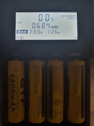Устройство с изысканными usb-кабелями: оно не работает ни с одним из моих USB-C кабелей, но работает с USB-C USB-A кабелей. Заряжает литий-ионные батареи при надлежащем напряжении. С NiMH он заряжает их до 1,49 В (1,33 в измеряет мощность 26%, как показано на рисунке).