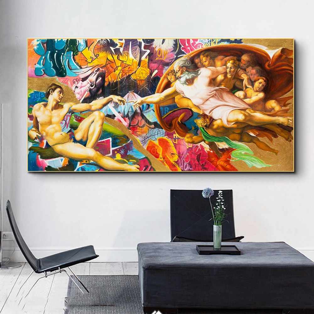 Знаменитая живопись, граффити, искусство, тач Бога, плакаты и печать, холст, живопись, настенные картины, гостиная, украшение для дома
