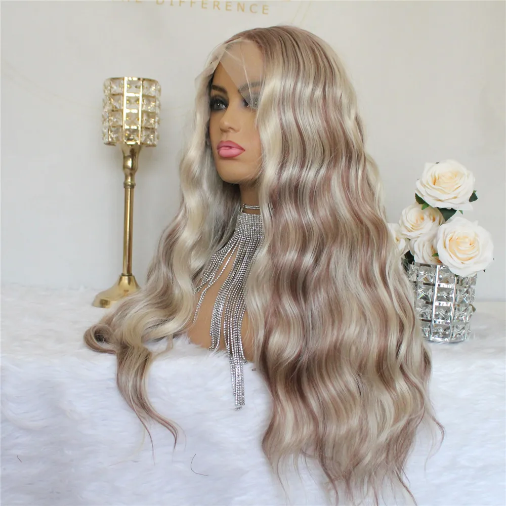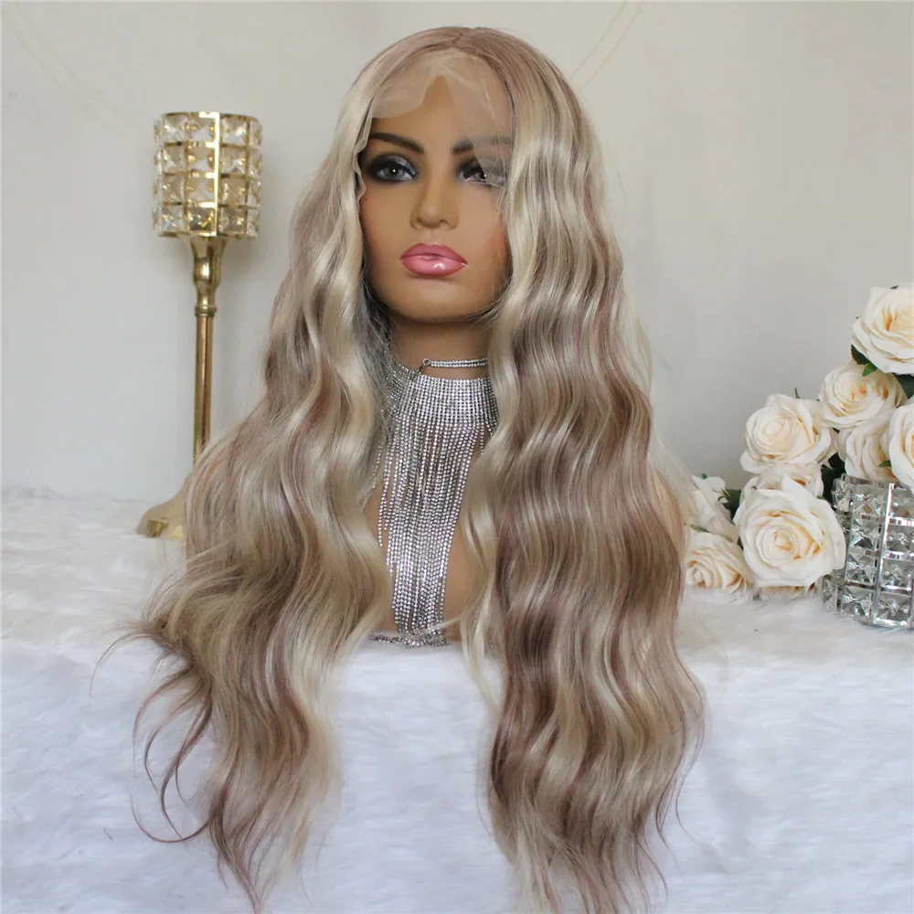 13*4 кружевной передний парик, 24 дюйма, подчеркивающий парик, волнистый, T-образный, синтетический, кружевной передний парик, светлый парик с эффектом омбре для женщин