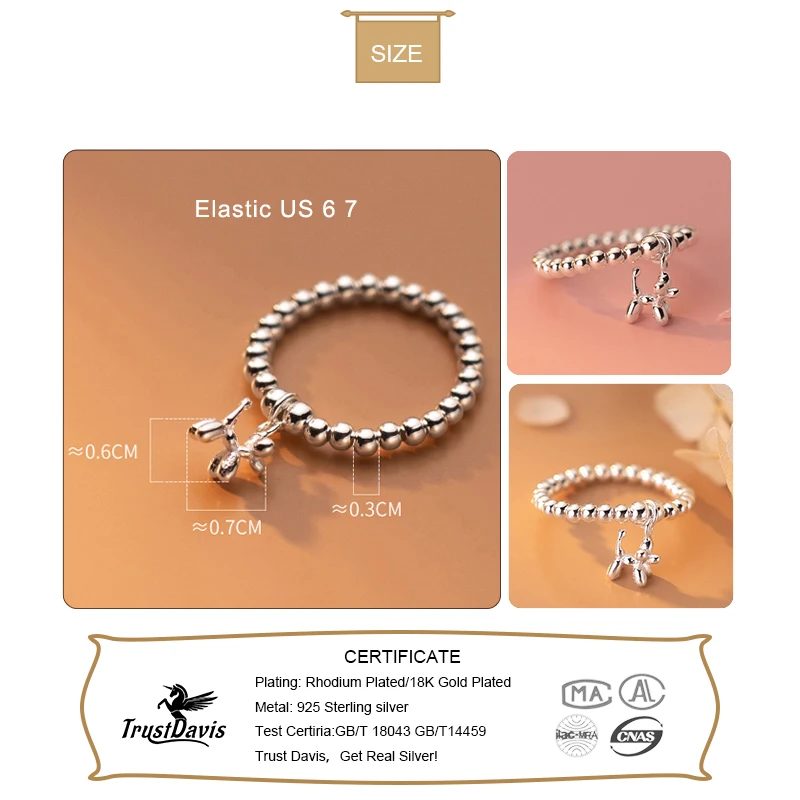 TrustDavis Настоящее серебро 925 пробы модное животное воздушный шар собака бусины эластичное кольцо для женщин Свадебная вечеринка Изящные Ювелирные изделия DA2608
