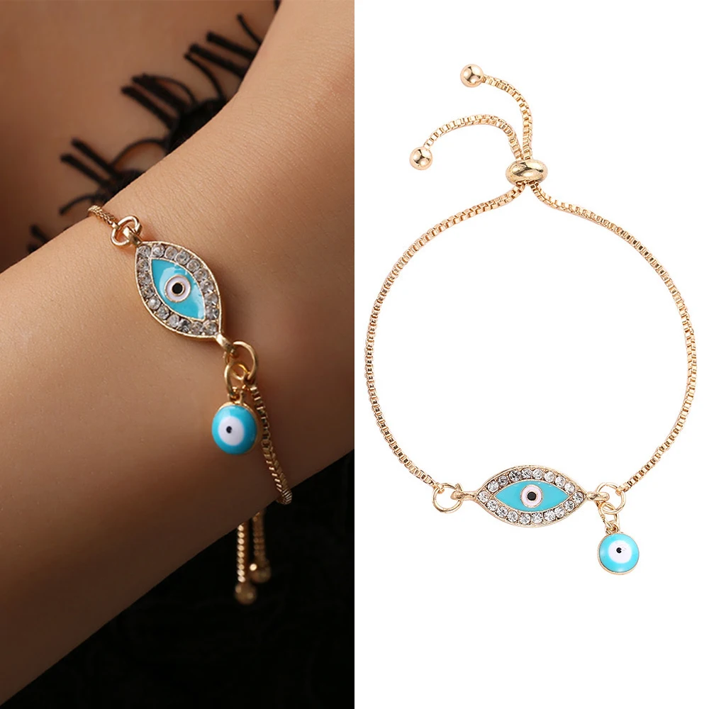 Турецкие синие кристаллы сглаза браслеты для женщин золотые цепочки...