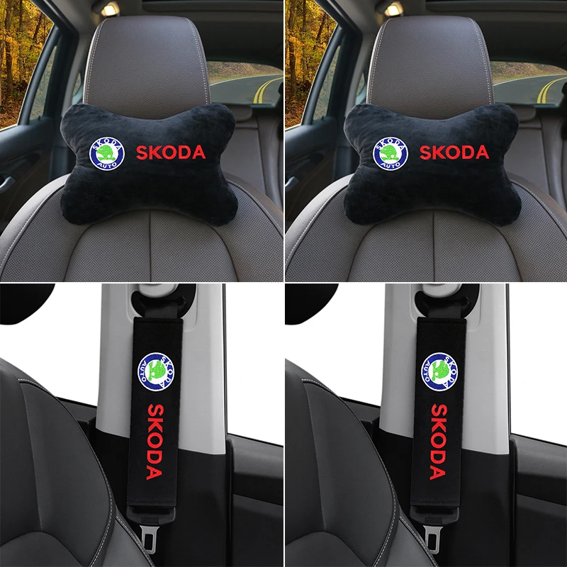 Подголовник сиденья автомобиля, подголовник из хлопка и бархата, с вышивкой, для skoda octavia fabia rapid yeti Kodiaq superb