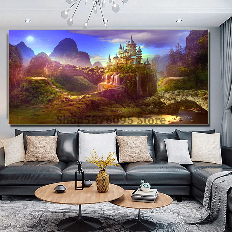 Фэнтези Замок DIY 5D алмазная живопись Сказочный пейзаж Набор для вышивки крестиком фотография TT5980