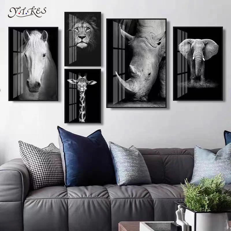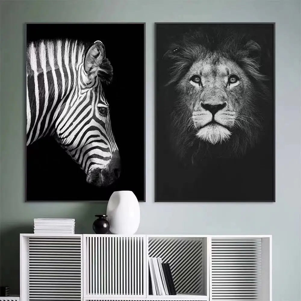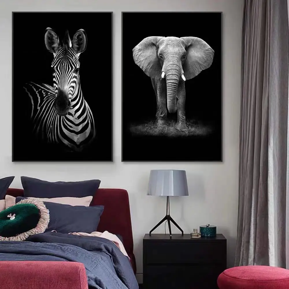 Украшение в скандинавском стиле для гостиной черно-белая живопись слон лев постер с зеброй атмосферсветильник Роскошная живопись