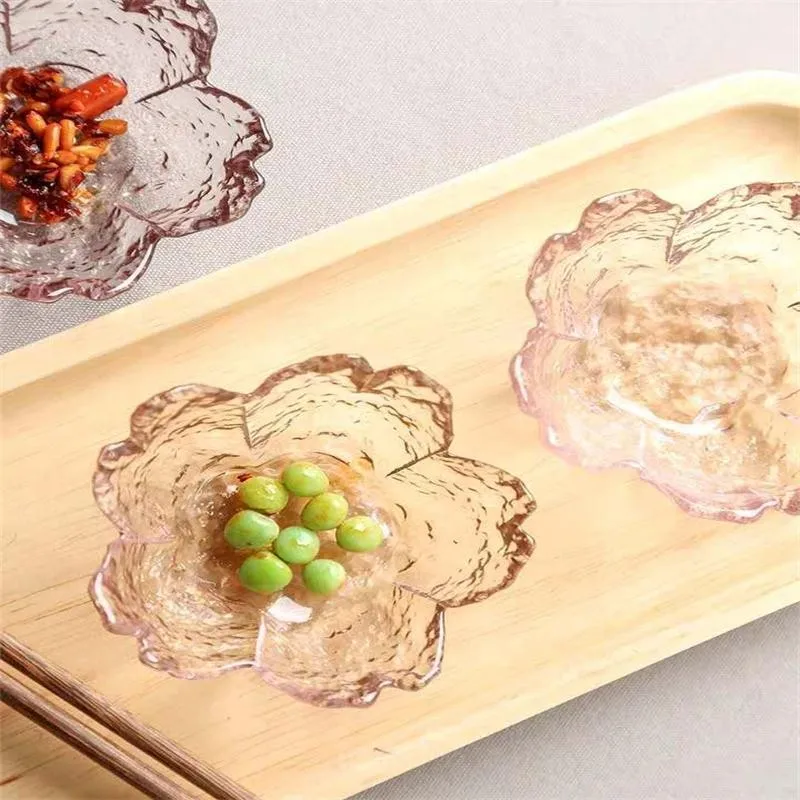 Керамическая посуда, маленькая стеклянная посуда, стеклянная чаша для соуса с золотой инкрустацией, мини-салазки с цветами вишни, фотоаппарат для мороженого, сала с фруктами