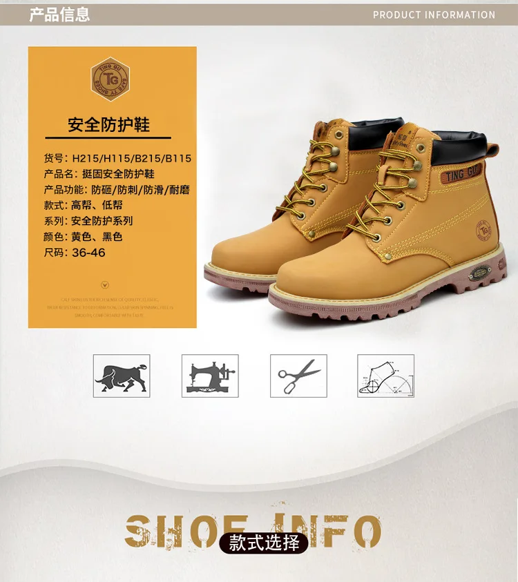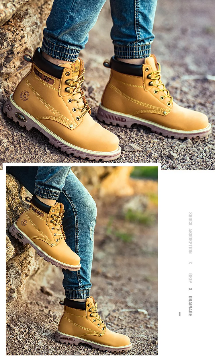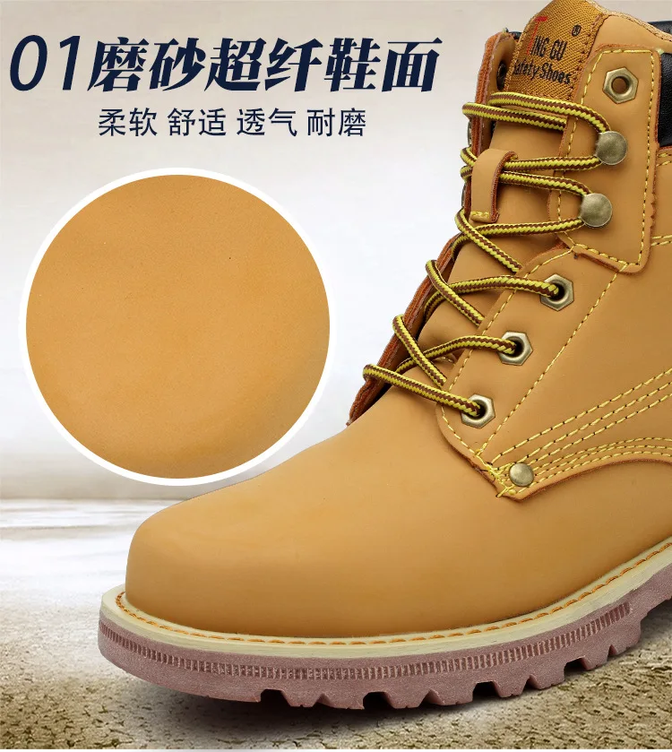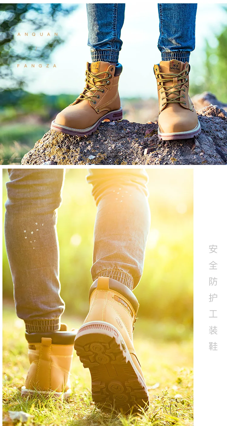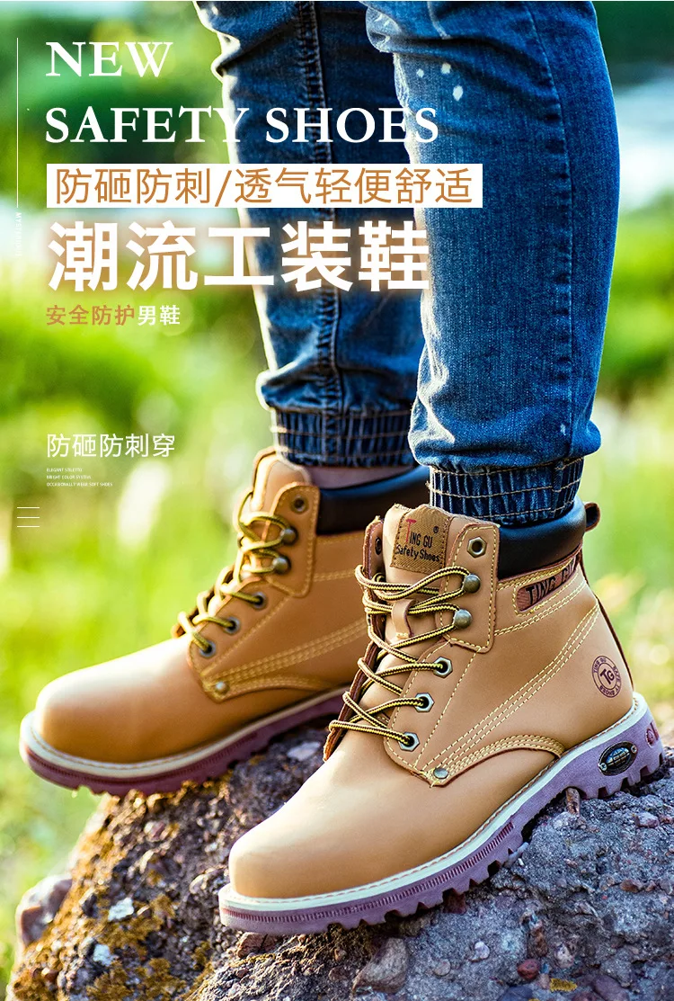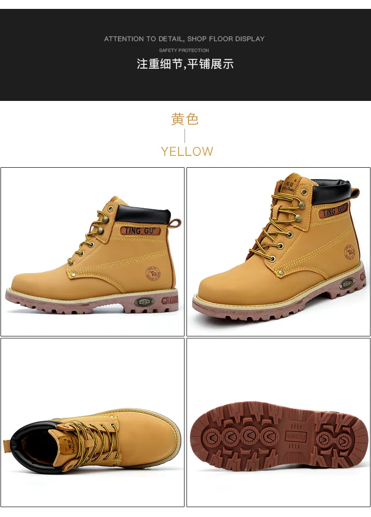 Мужские защитные ботинки с высоким верхом, рабочие ботинки с желтой подошвой, противоударные полуботинки, защитные походные ботинки для тренировок