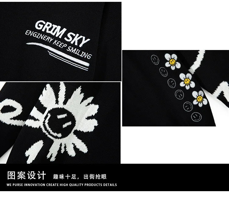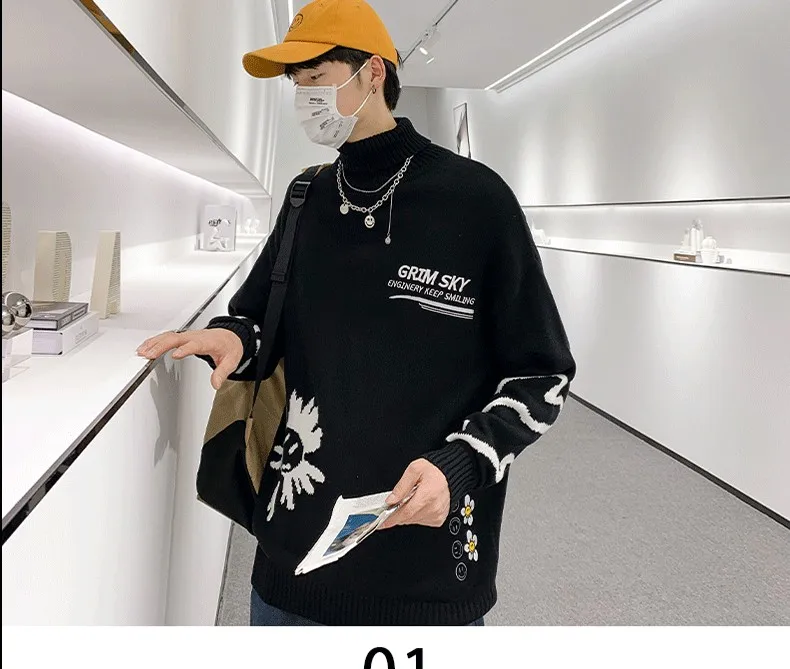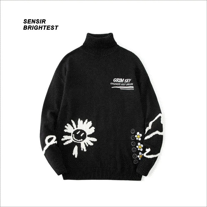 Мужской свитер с высоким воротником Sensir, модный брендовый свитер с длинным рукавом, вязаный на компьютере, свитер со смайликом на осень и зиму