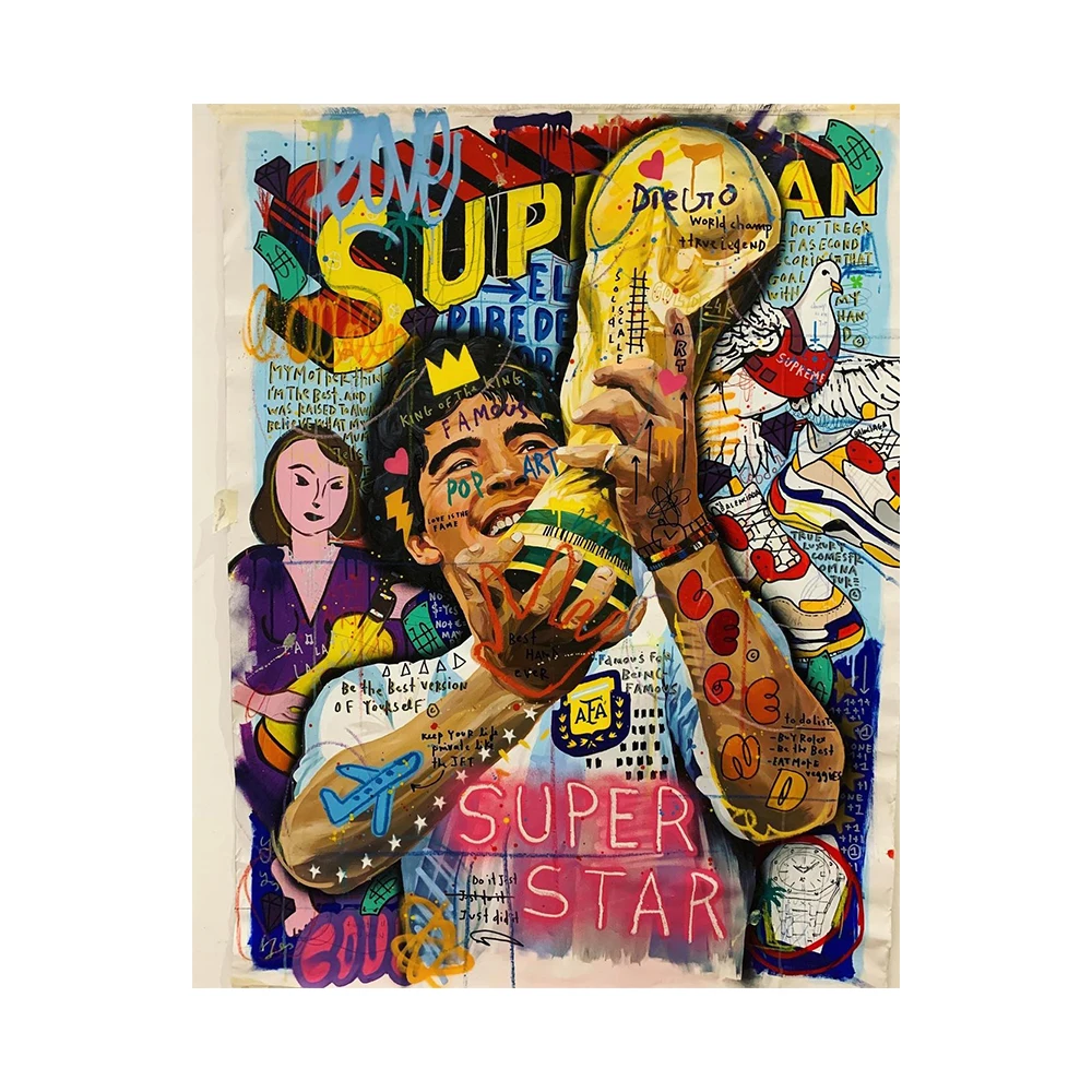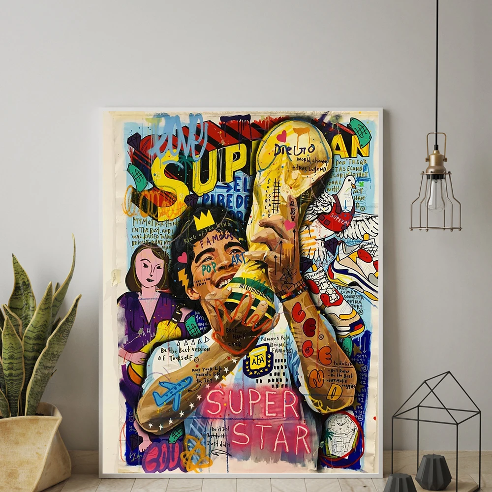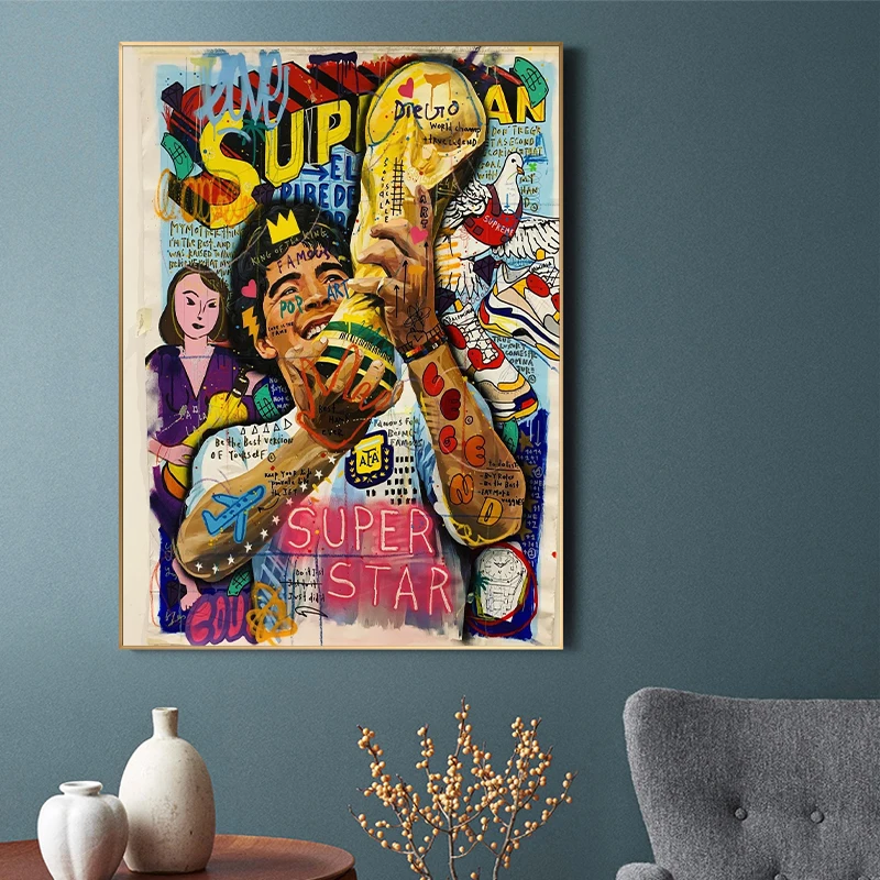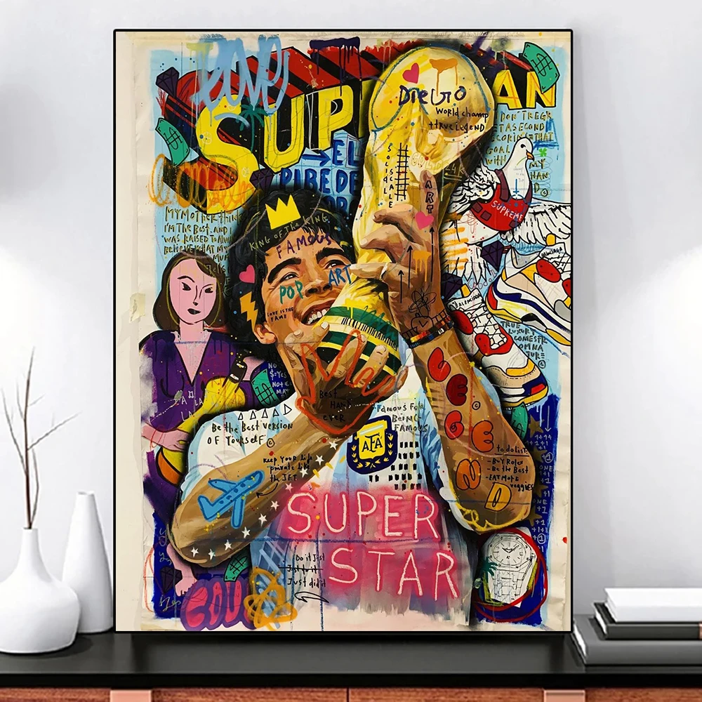 Картина на холсте, граффити, искусство, знаменитый футбол, искусство на стену, картины для гостиной, украшение для дома