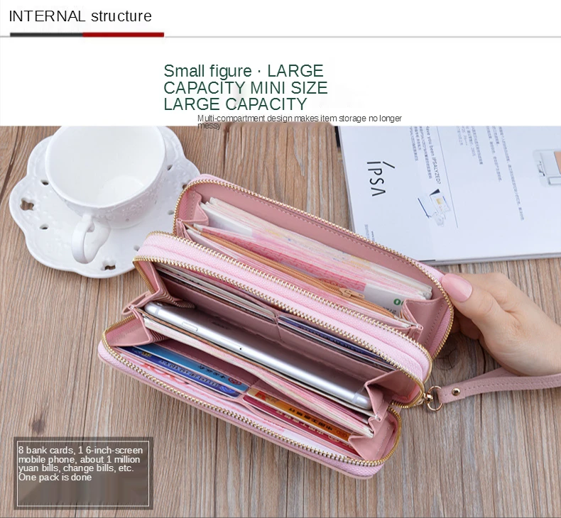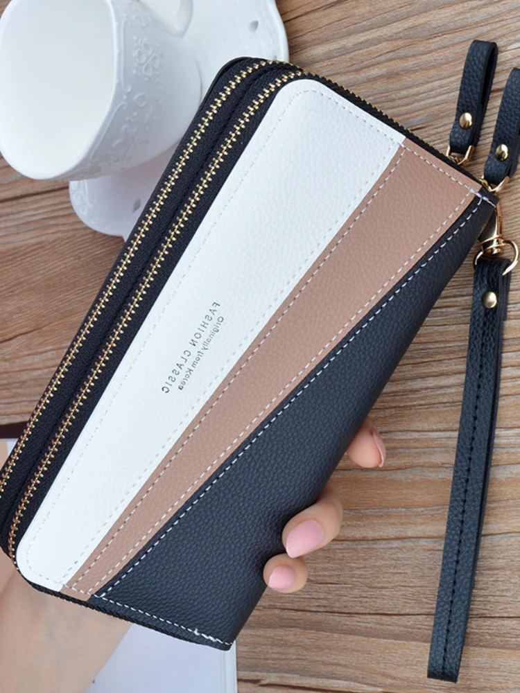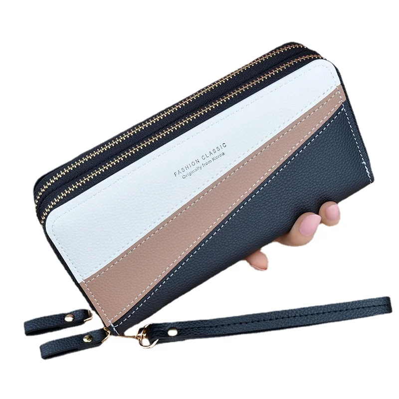Женский Длинный кошелек с двойной молнией, вместительный двойной кошелек в Корейском стиле, цветной кошелек для мелочи, женский кошелек