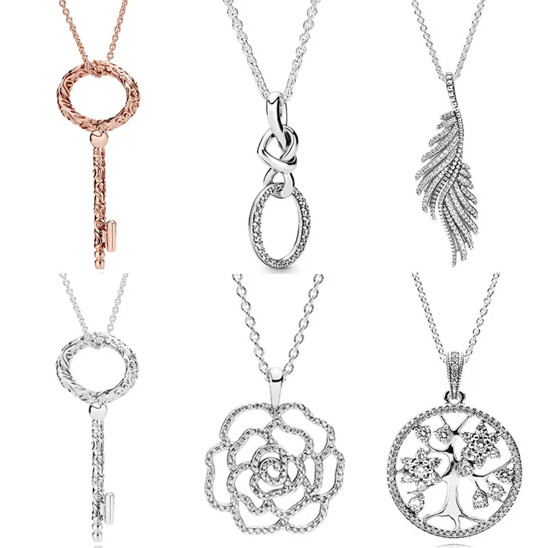 Женское ожерелье из серебра 925 пробы с подвеской в виде цветка розы