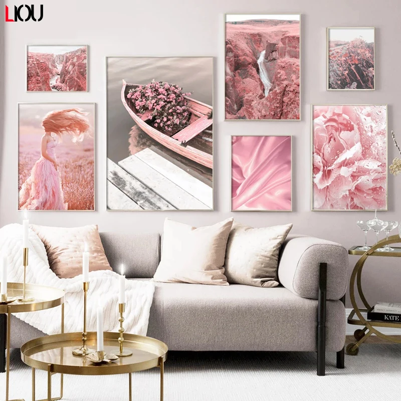 Современный розовый цветок лак для ногтей модный постер с принтом р...