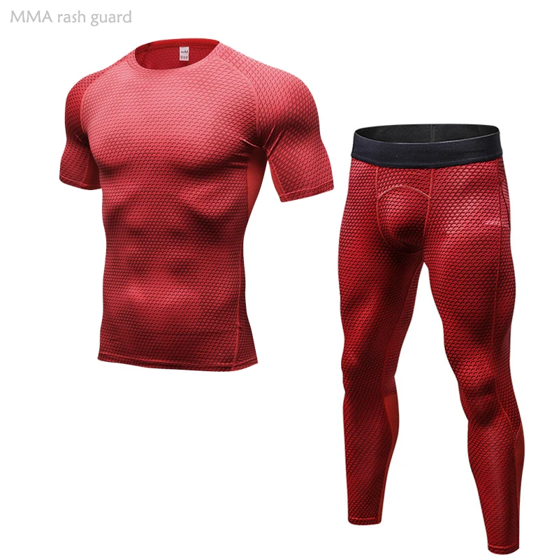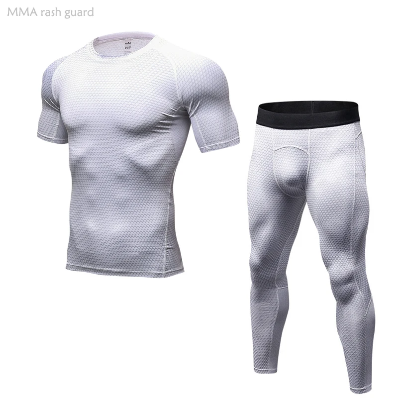 Мужская летняя одежда для тренировок, футболка для бодибилдинга, леггинсы для фитнеса, спортивный костюм, спортивные штаны, Быстросохнущий компрессионный костюм для бега
