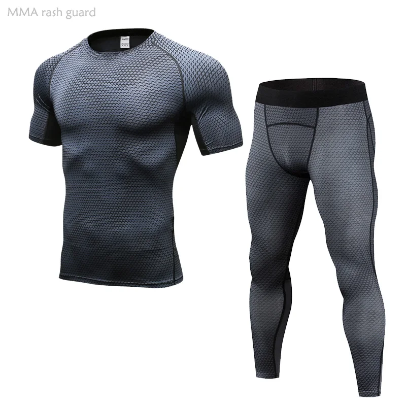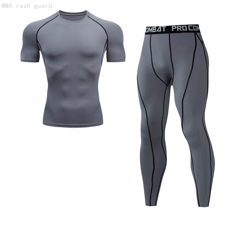 Костюм для мужчинПрименимые сцены: тренажерный зал, Велоспорт, бег, Фитнес Спорт на открытом воздухе, ММА мужской Рашгард и так далееПожалуйста, учитывайте разницу в 1-2 см из-за ручного измерения из-за различных условий отображения и освещения. Цвета могут немного отличаться от тех, которые показаны на фотографиях.Особенности1. Дышащая спортивная ткань, четыре иглы и шесть линий, высокая эластичность и герметичность2. Быстро впитывает пот, быстро испаряется и можно носить удобно и стильно3. Эластичная ткань, быстросохнущая и дышащая4. Растяжка в четырех размерах, без ограничений