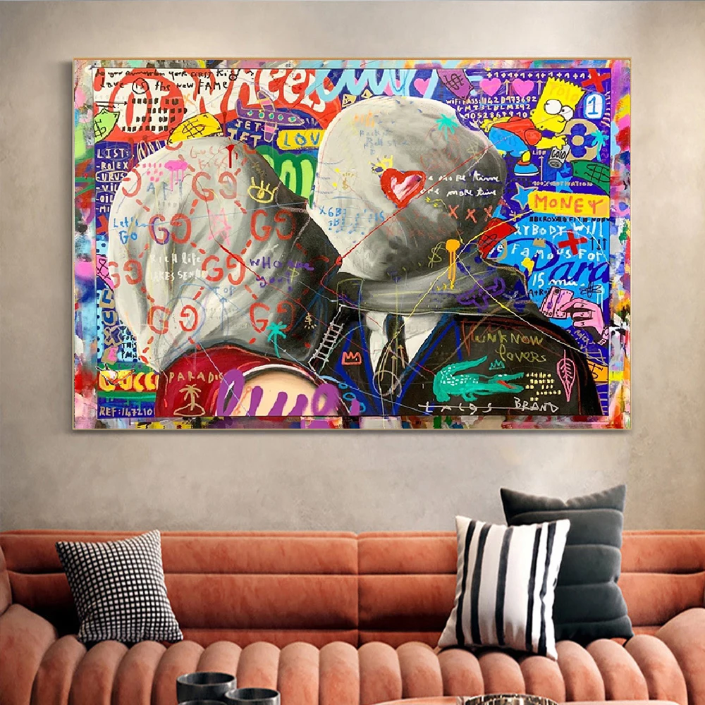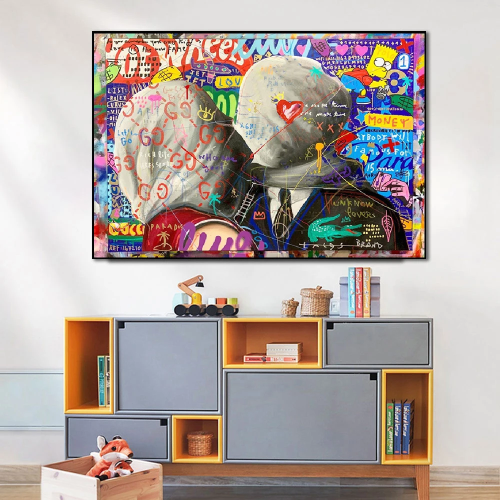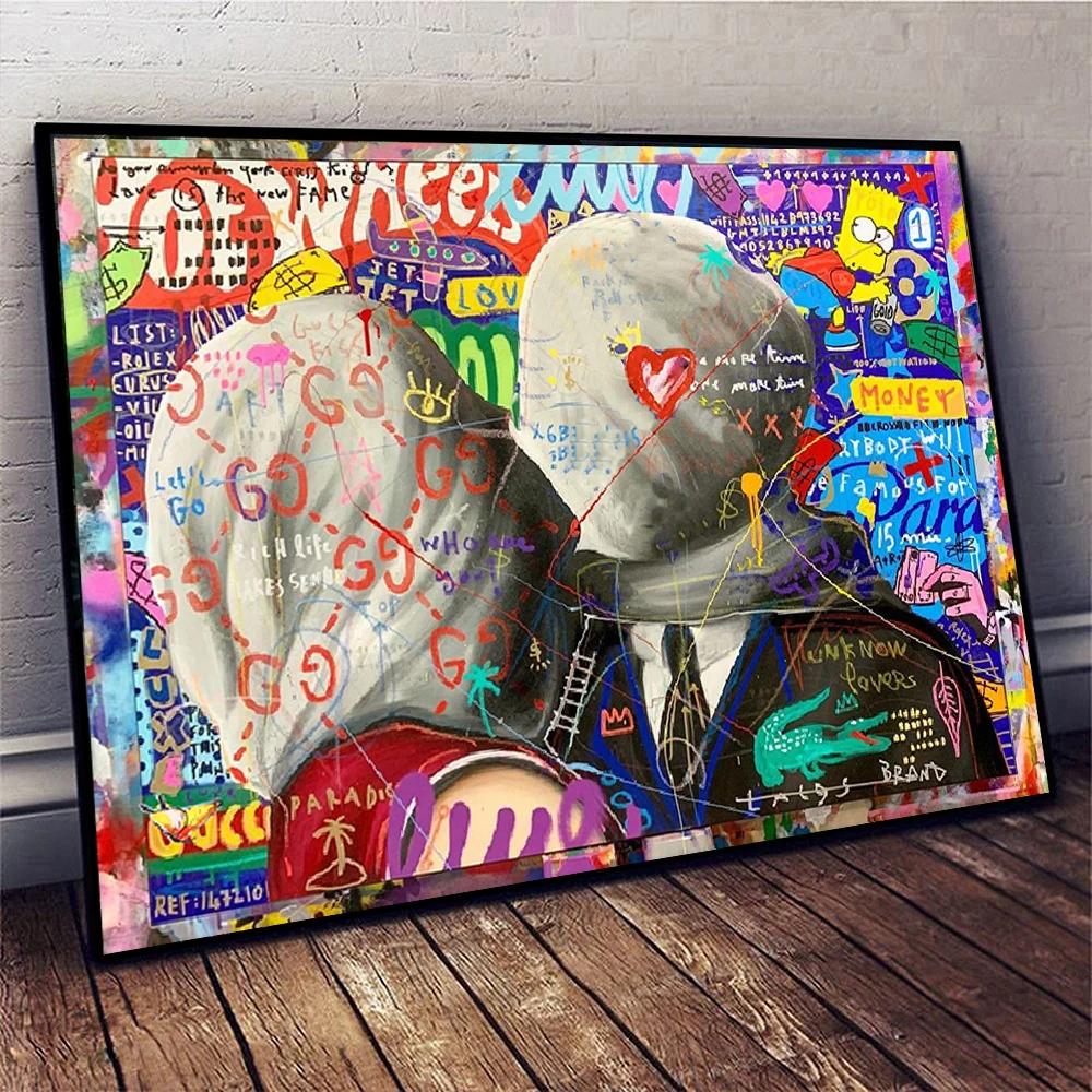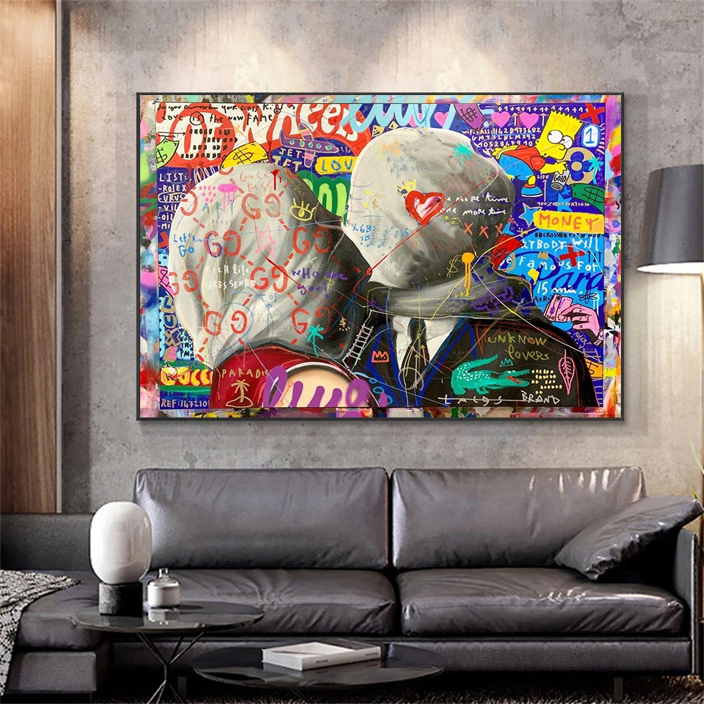 Постеры для любителей граффити, поцелуй и принт, поп-арт стена, картина для гостиной, украшение для дома