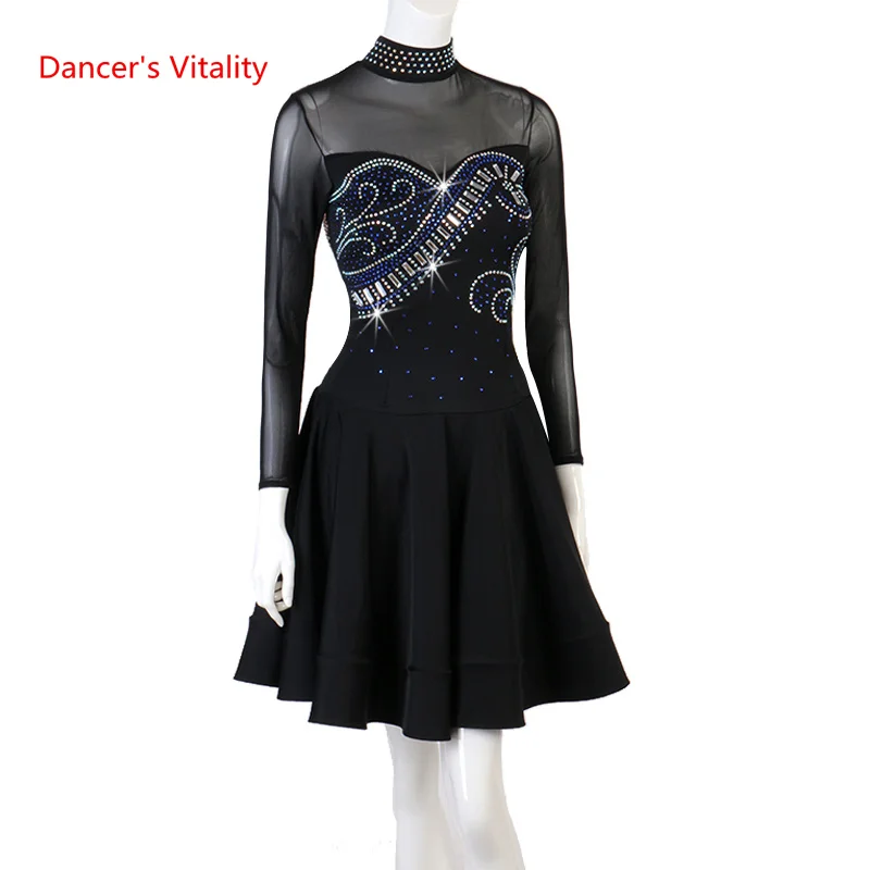 Платье женское для латиноамериканских танцев, карнавальные костюмы самбы, черное платье из спандекса с длинным рукавом, индивидуальная юбка для девочек