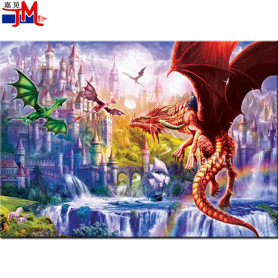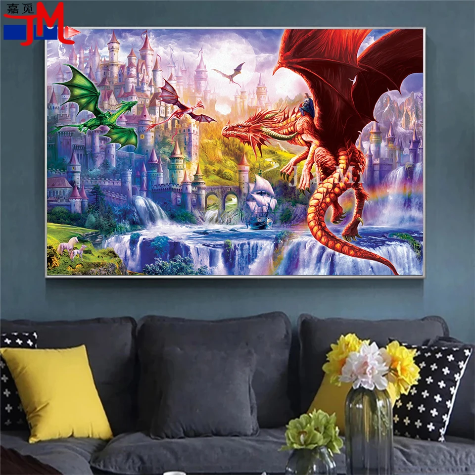 5D алмазная Вышивка Дракон Королевство Алмазная картина полный квадрат круглый с животными из стразов замок картина Алмазная мозаика головоломка