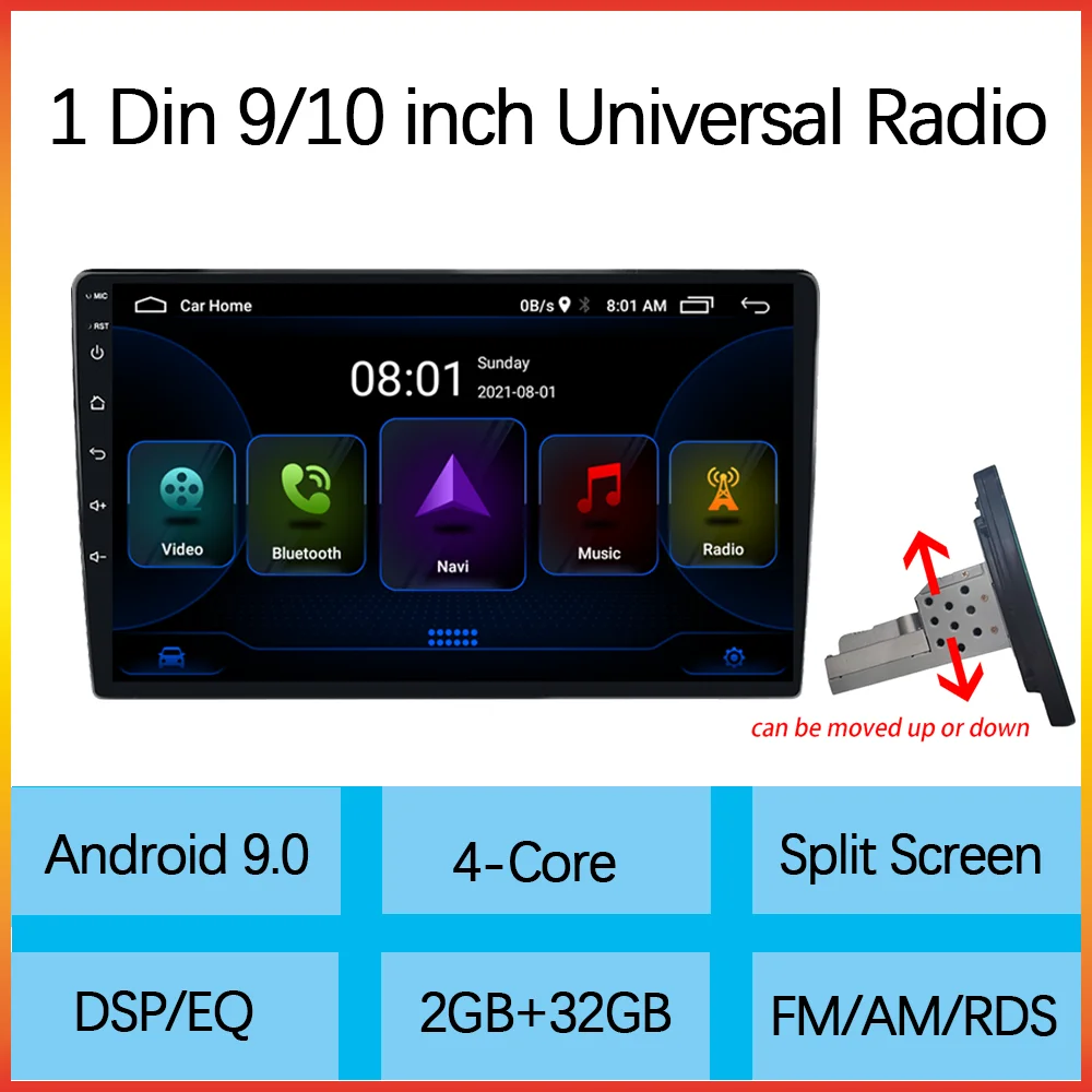 Изюминка:1. Четырехъядерный процессор2. ОС Android 9,0 (новейшая версия)3. Встроенный av-выход (поддержка подключения всех видов к монитору подголовника)4, встроенный 1G/2G RAM и 16G/32G ROM5, встроенный 2USB вход, он может воспроизводить музыку/Кино/фото с местного диска или подключенной tf-карты.6, 2.5D экран, сплит-экранRAM 2G + ROM 32G: RDS, AM, FM, DSP, Bluetooth, GPS, Wifi,AHDRAM 2G + ROM 16G: FM, RDS, ASP, Bluetooth, GPS, WifiRAM 1G + ROM 16G: FM, RDS,Bluetooth, GPS, Wifi