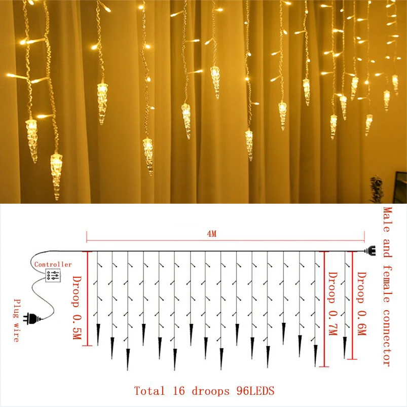 5-28 м Рождественская гирлянда светодиодная сосулька Сказочный занавес светильник 8 режимов гирлянда водопад дом новый год Хэллоуин Сад Патио Украшение
