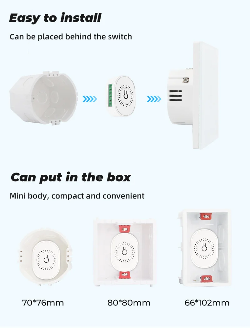 Мини-дизайн корпуса 59*42*20 мм, подходит для большинства счетных коробок, выключателей и настенных розеток.