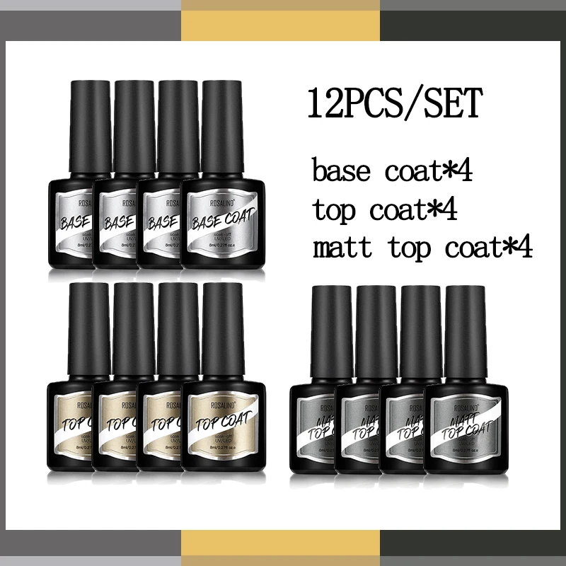 Верхнее и Базовое покрытие ROSALIND, 10 шт., полуперманентный УФ-ге...