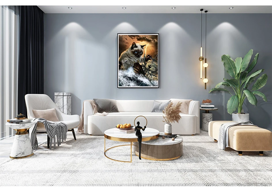 Алмазная вышивка с квадратнымикруглыми стразами, картина с кошками,...