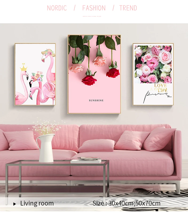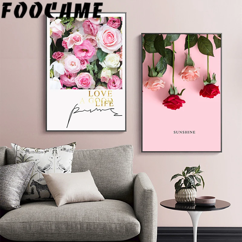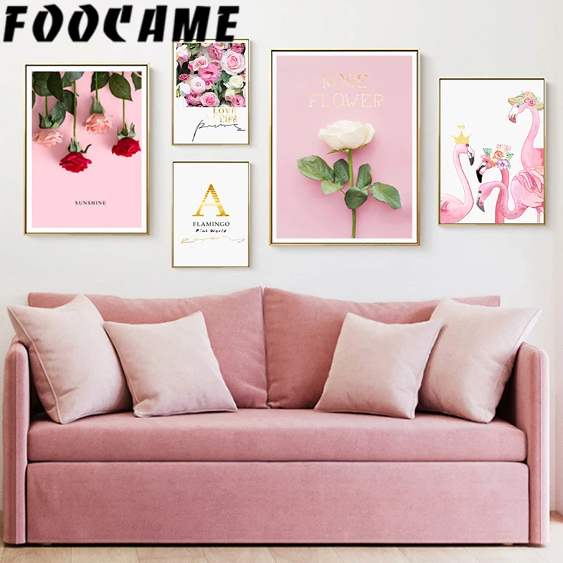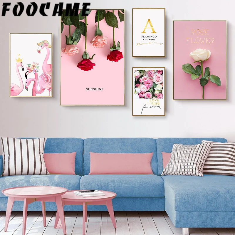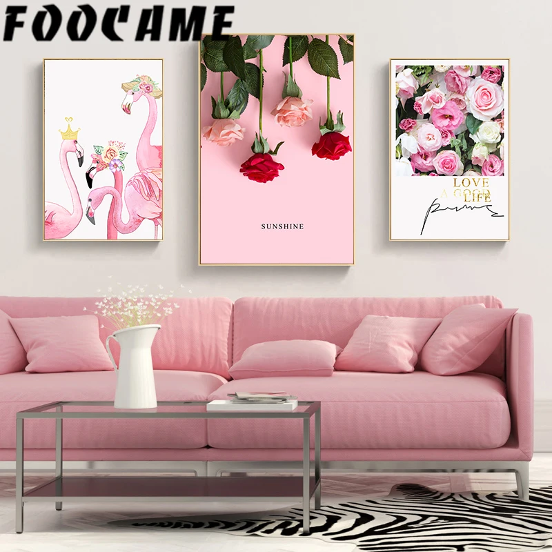 Розовая роза Flower картина с изображением фламинго Sunshine скандинавские сладости художественный холст домашний плакат Фотография Печать современное оформление комнаты Настенная картина
