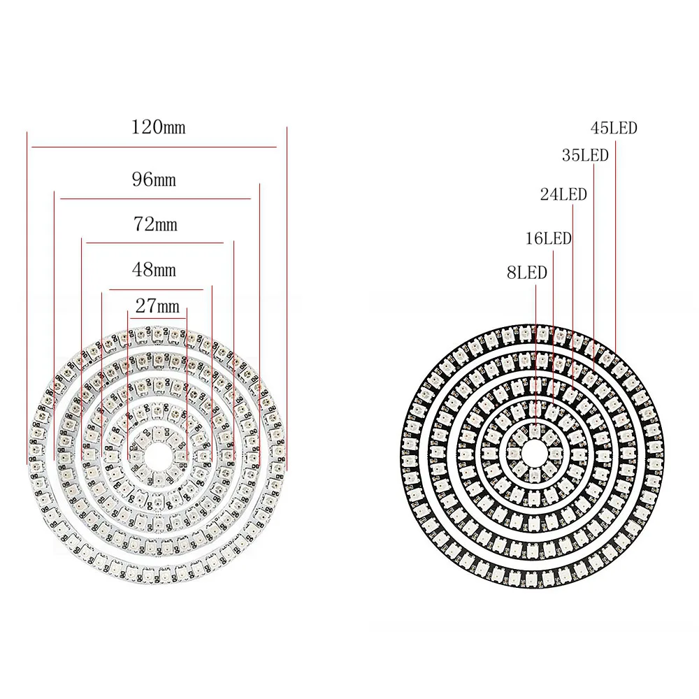 Ширина8/16/24/35/45Leds Ring