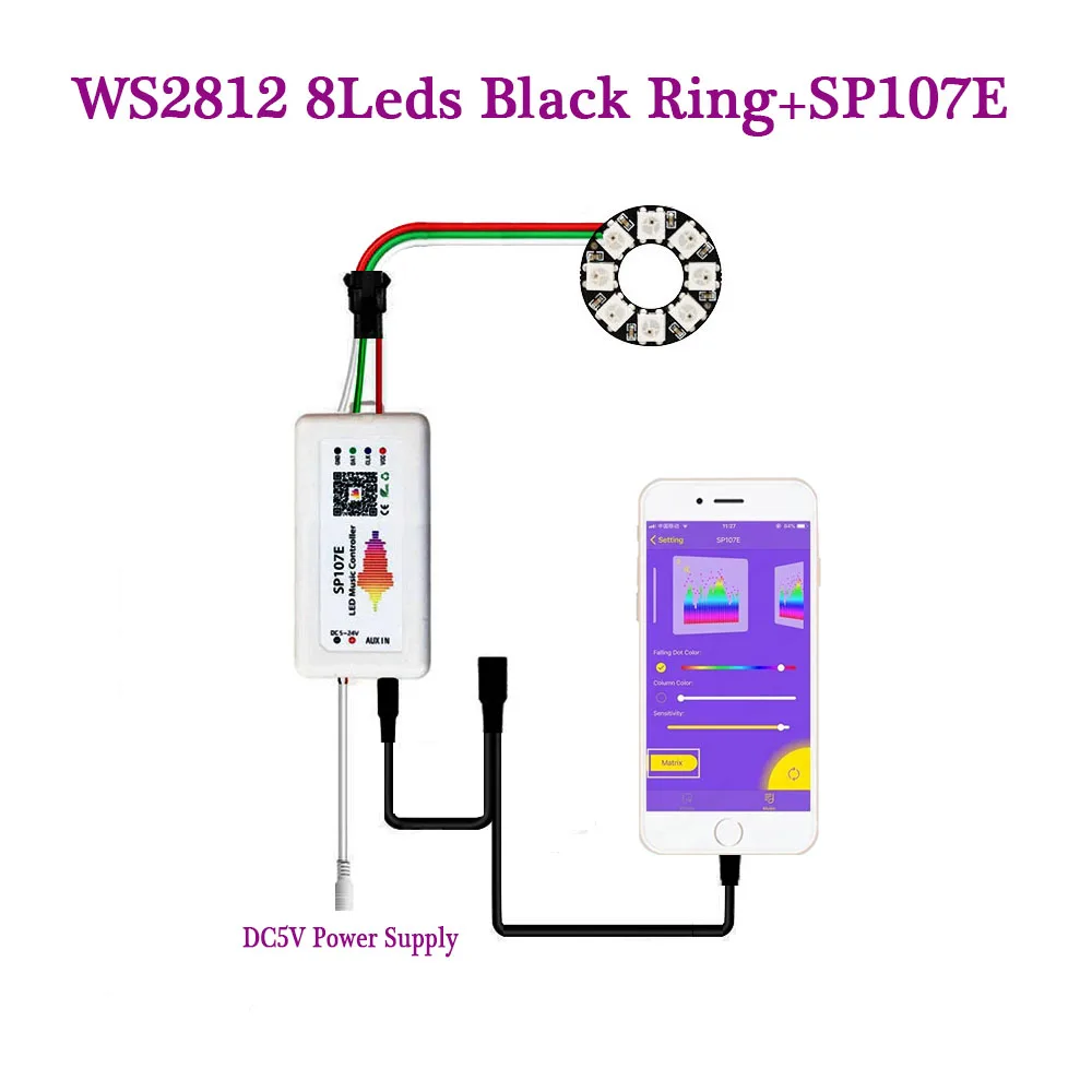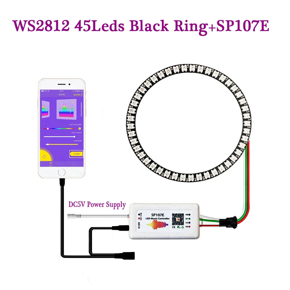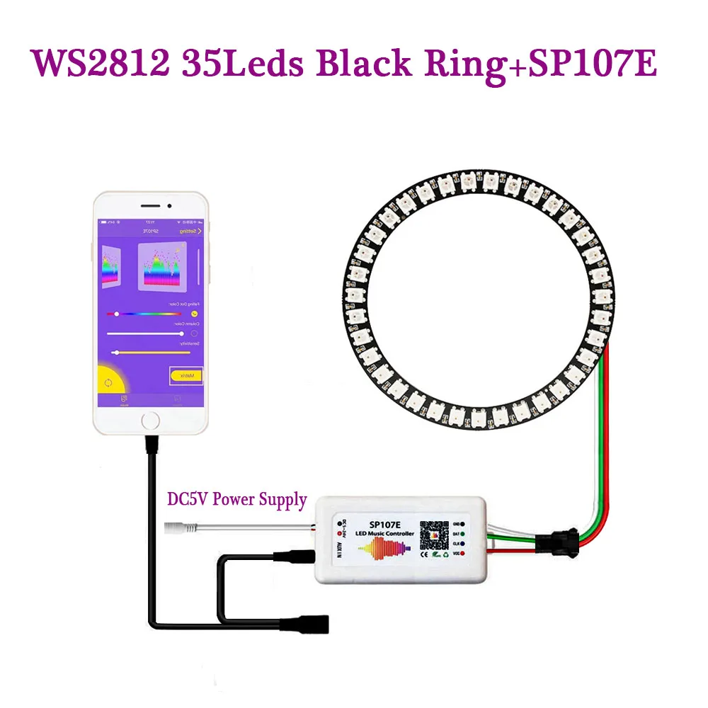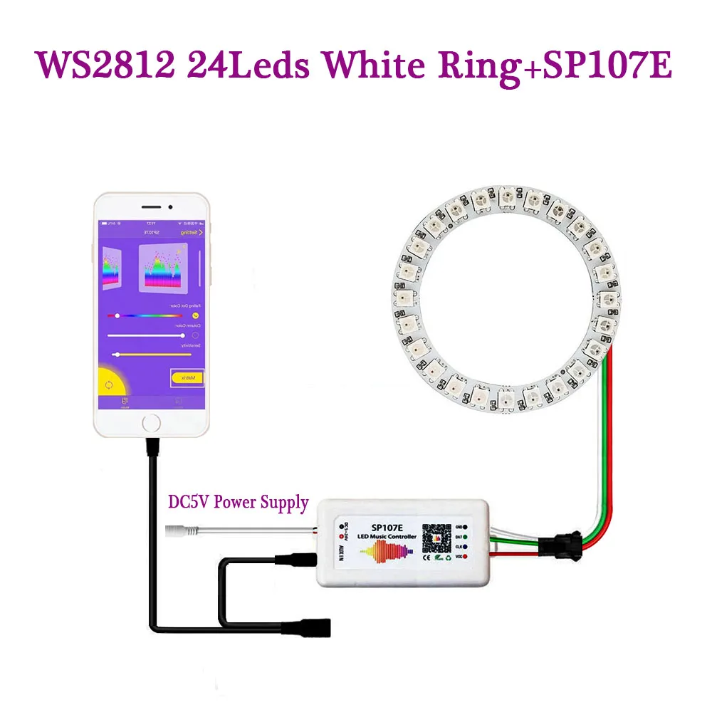 Пиксельное кольцо WS2812B, светодиодный музыкальный контроллер SP107E 816 243545 светодиодов, индивидуально адресуемый WS2812 IC RGB, полный цвет, круг 5 В