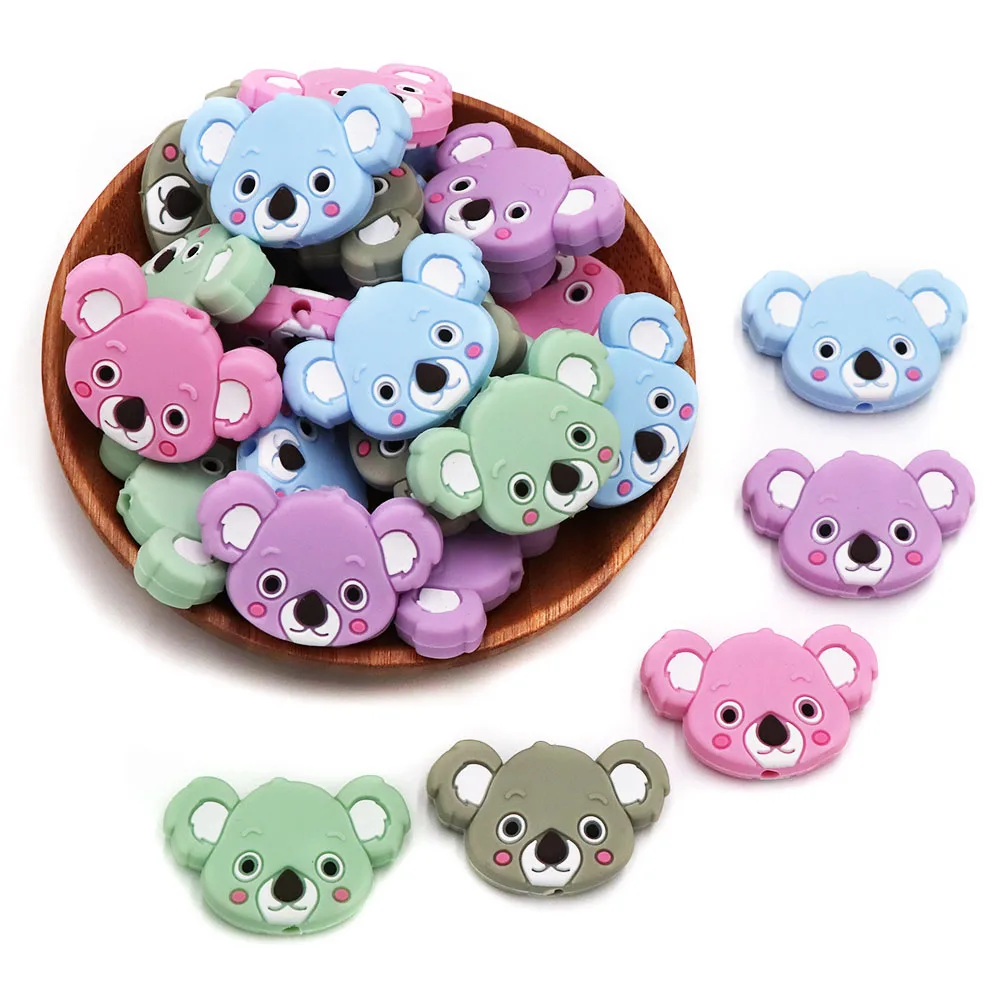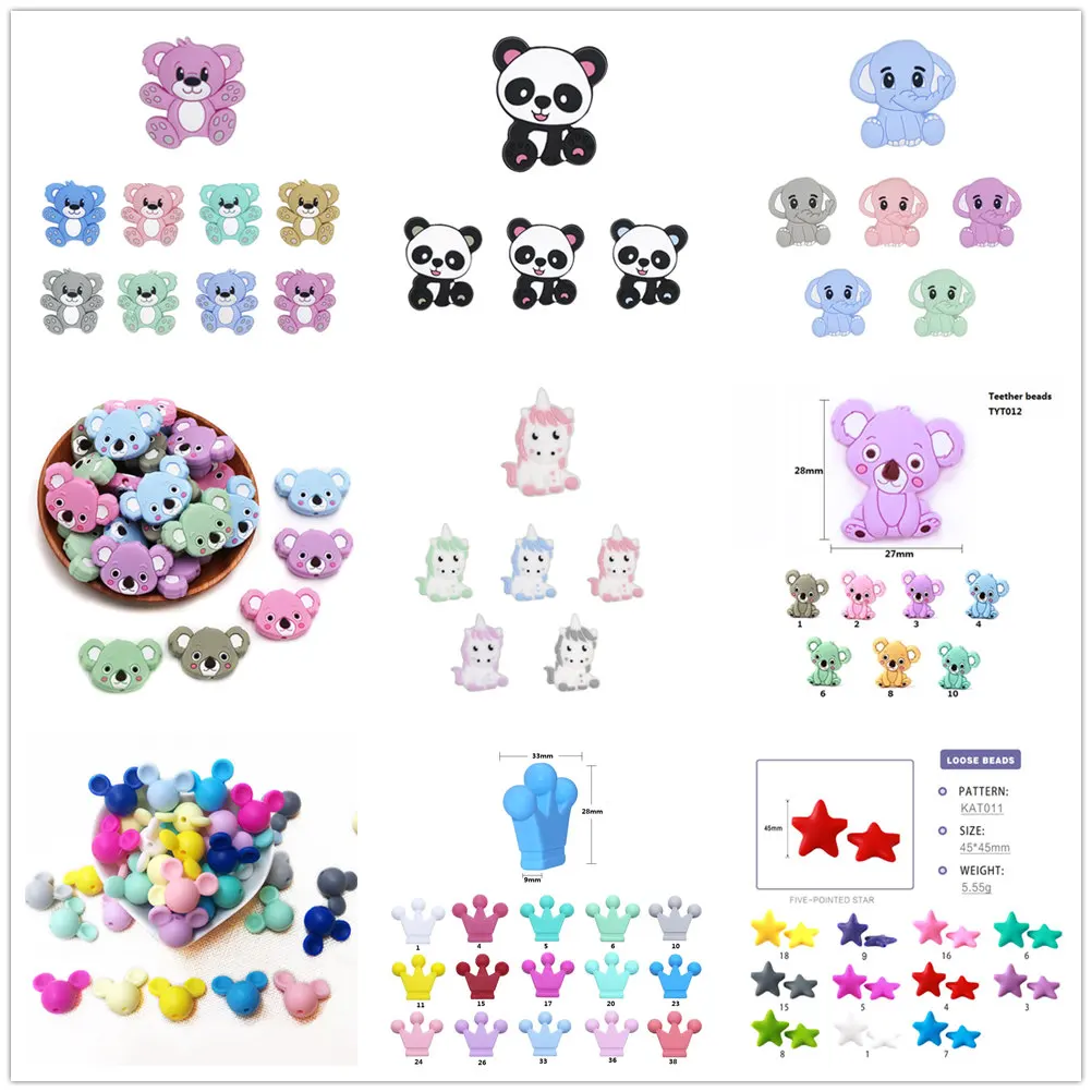 10 шт., силиконовые бусины в виде мультяшных животных, панда, слон, звезда, единорог, коала