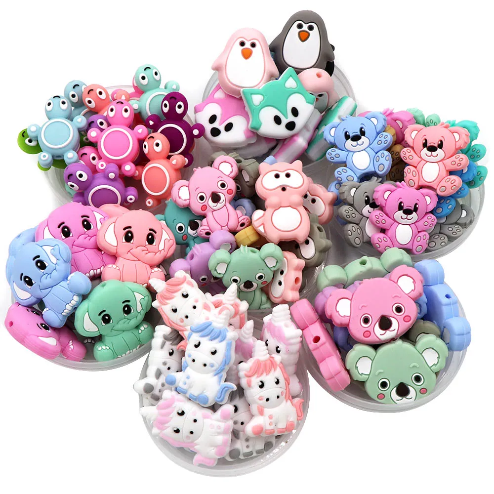 Raindaxc 10 шт. силиконовые бусины с мультяшными животными панда слон звезда Единорог коала BPA еда бесплатно Уход соски клип ребенка прорезыватель