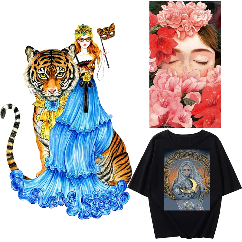 Цветок девушка патчи Тигр термо стикер на одежду Железный На переноске для одежды термоклей патч аппликация «сделай сам» для платья