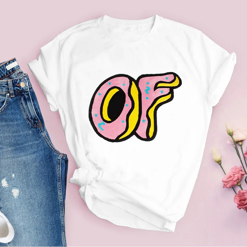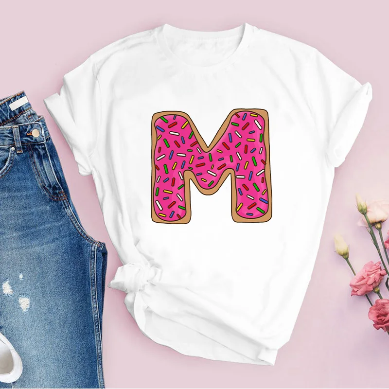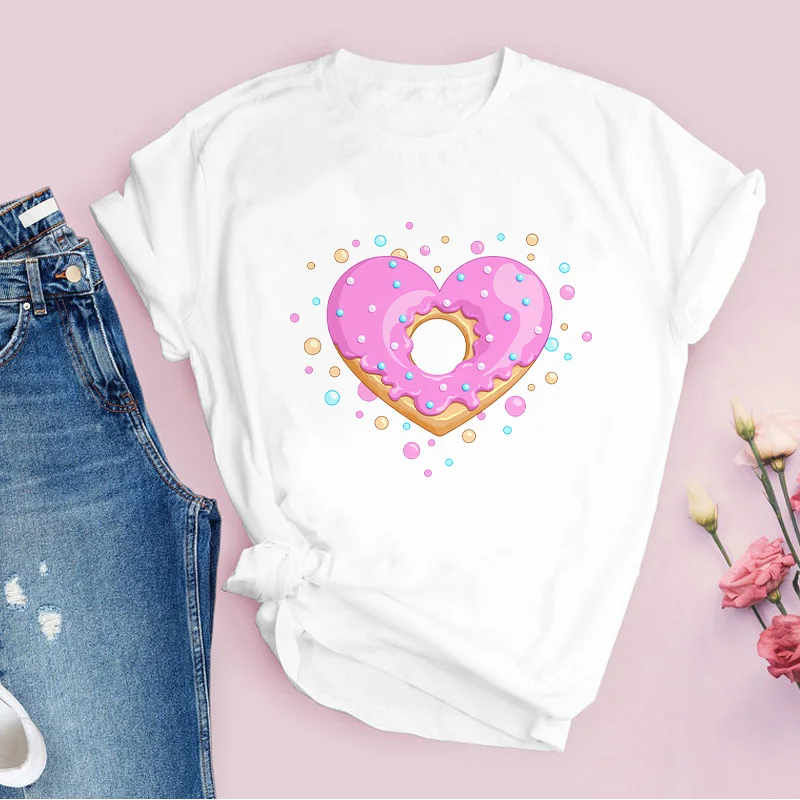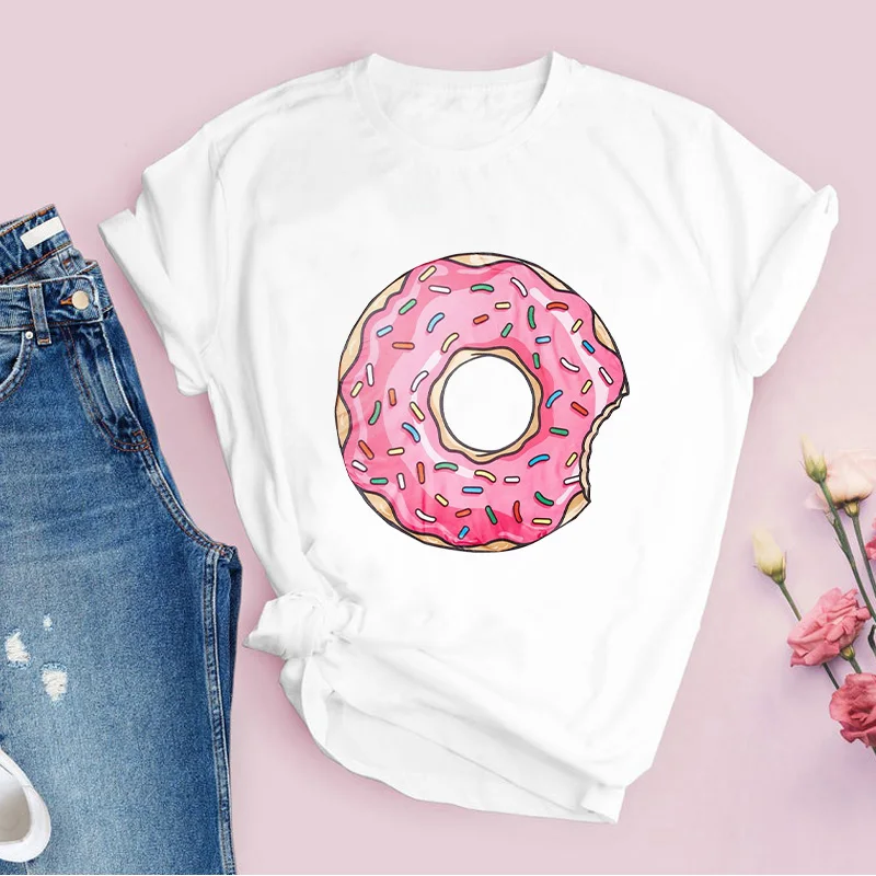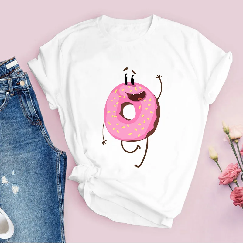 Новинка 2021, летняя Базовая женская футболка, футболки, одежда с рисунком пончика из мультфильма, белая женская футболка