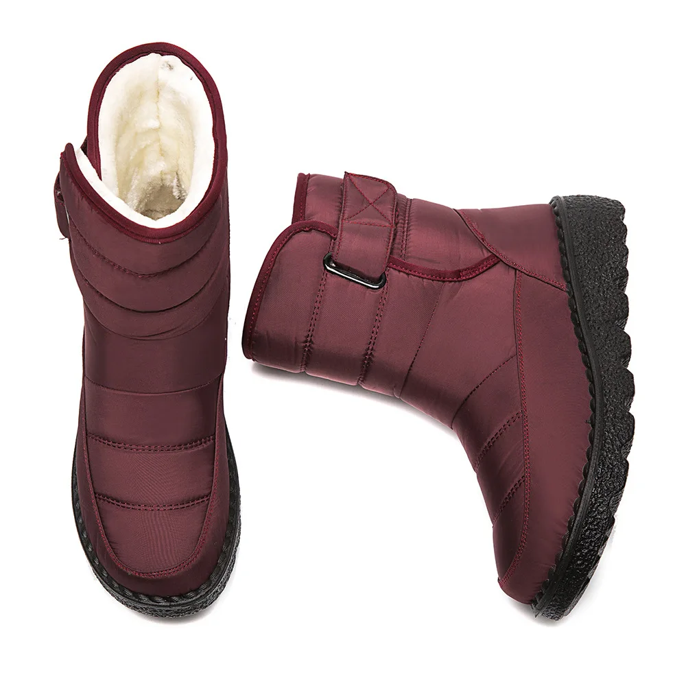 Женские зимние ботинки на нескользящей подошве, водонепроницаемые ботинки до середины икры с подкладкой из хлопка, Размеры 35-43, 2021