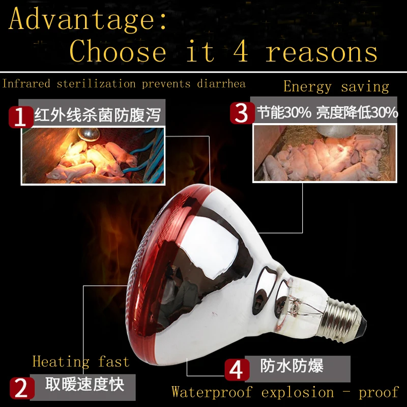 Поросята инфракрасный светильник, изоляционные лампы, цыплята, нагревательный светильник, Cubs, водонепроницаемый, для борьбы с беспорядками, лампы для размножения собак, изоляционное оборудование