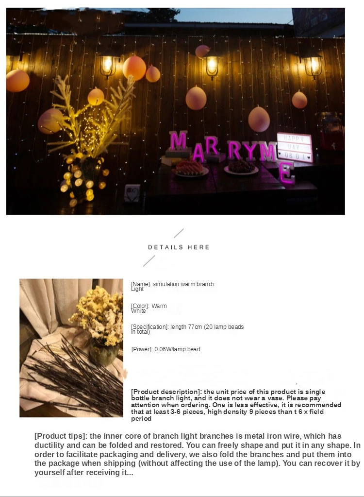 Это ужас. Вместо того, что на фото, пришла палочка с тремя ветками, на которых огоньки не соответствующие по цвету тем, что заказывала. Чтобы был такой букет, как на фото, надо минимум пять таких веток, а то и больше. Очень разочарована, заказывала на подарок. Обидно, что в описании ничего не было про это, так бы изначально больше штук заказала. В общем ожидание и реальность...