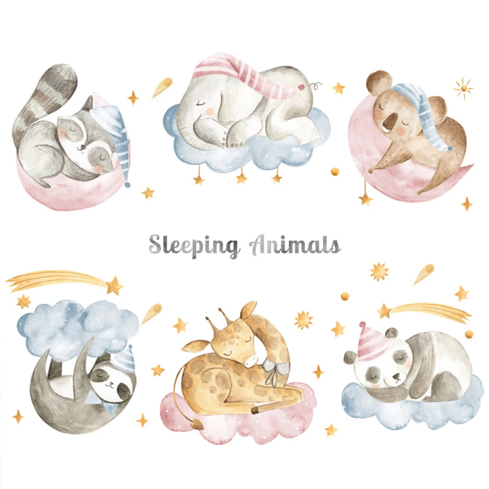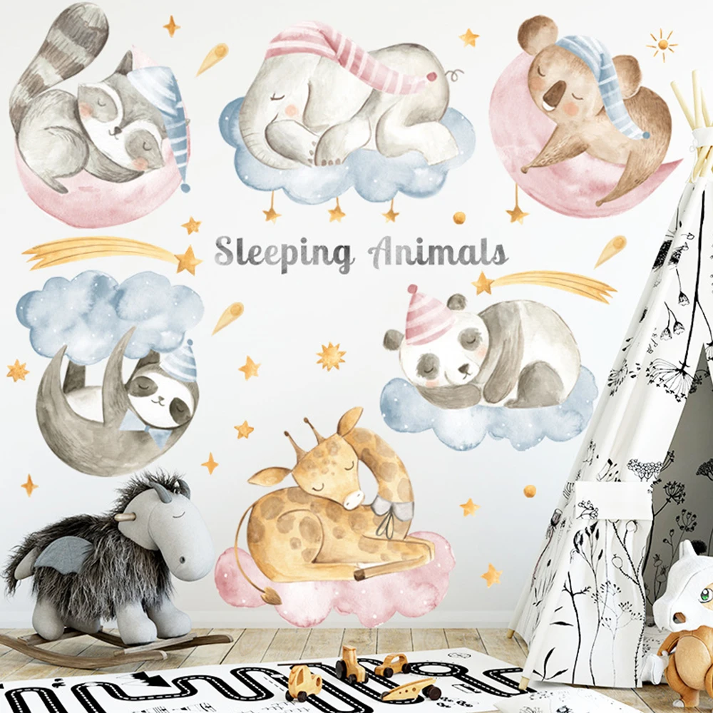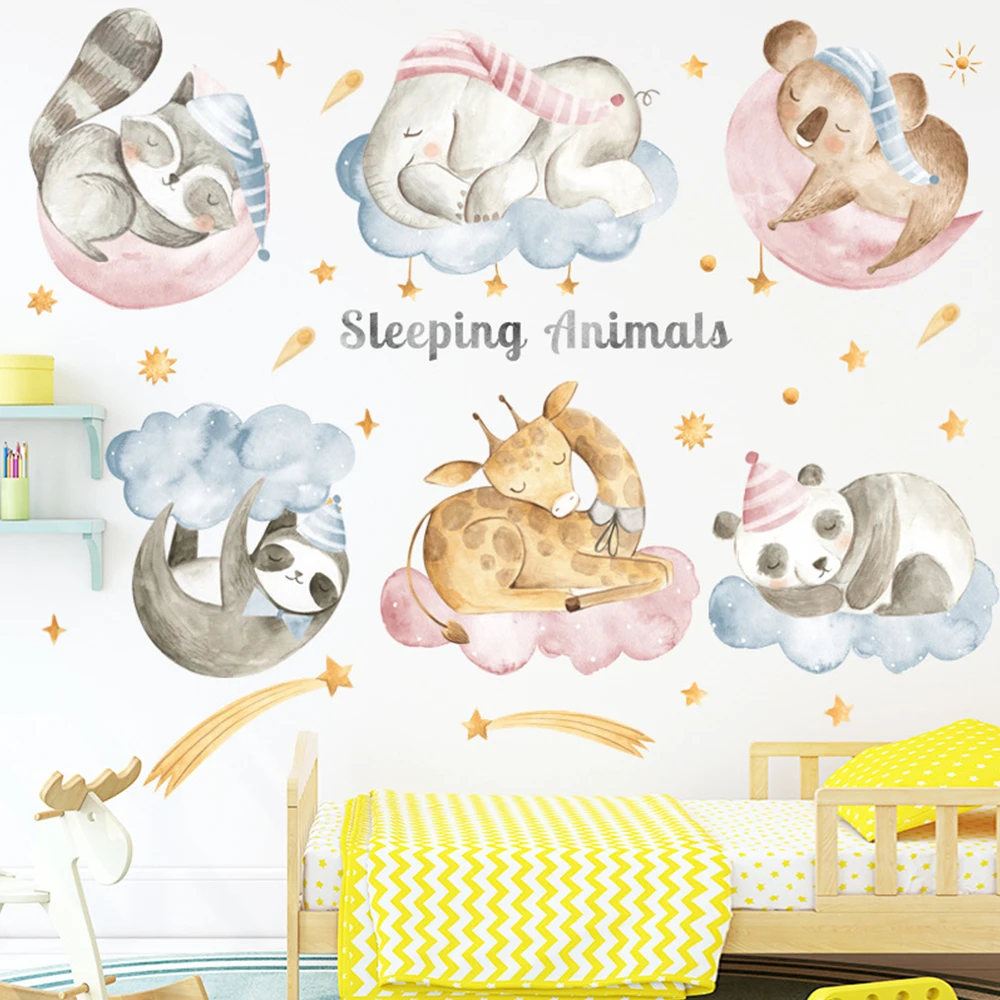 Наклейки на стену с изображением панды, ленивого енота для детских комнат, для маленьких мальчиков, для детской спальни, животных, для сна, для детской спальни, наклейки для скандинавских
