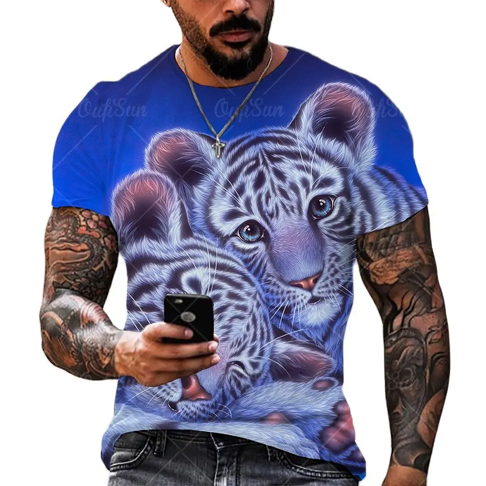Футболка мужская с круглым вырезом, модная тенниска с 3D принтом тигра, удобная повседневная майка с короткими рукавами, уличная одежда, лето