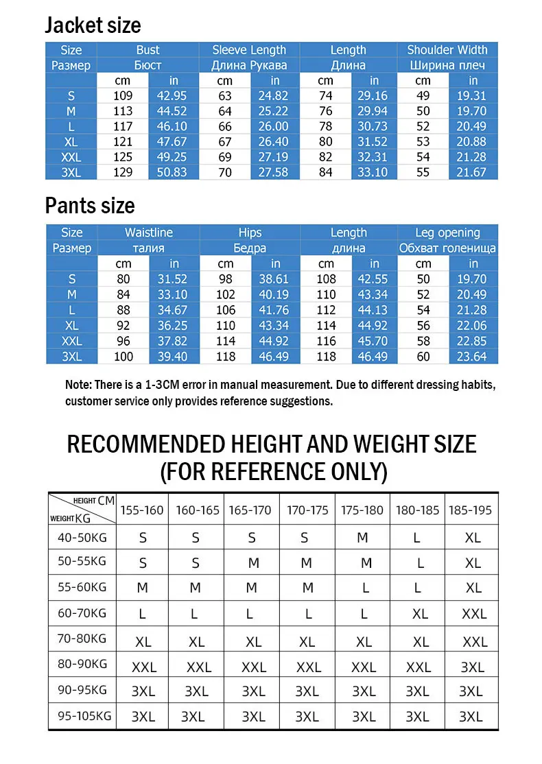 Товар полностью соответствует описанию. Цвет бледно голубой. Очень качественно сделан. На параметры: ОГ-112, ОТ - 94, ОБ - 113, рост - 168 см. я заказала XXXL,по совету продавца. Брюки сели плотно, но присесть можно, длина на мой рост. По измерениям брюки: ОТ - 96, ОБ - 114, куртка: ОГ: 128 см. Мне кажется, что прислали размер брюк XXL, на брюках бирки с размером отсутствуют. Куртка большая. Рукава практически закрывают пальцы. Надо было брать на размера два меньше. Свой размер можно смело выбирать по таблице размеров.