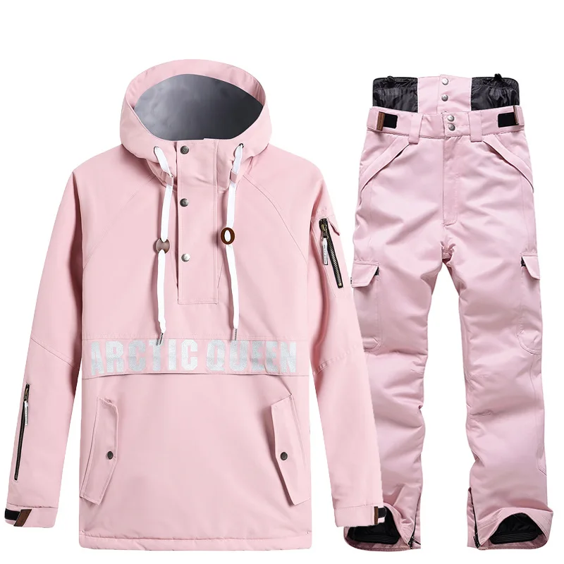 Женский лыжный костюм 2022, зимний теплый лыжный комплект с капюшоном, ветрозащитная водонепроницаемая куртка для пар, брюки, костюм для катания на лыжах и сноуборде