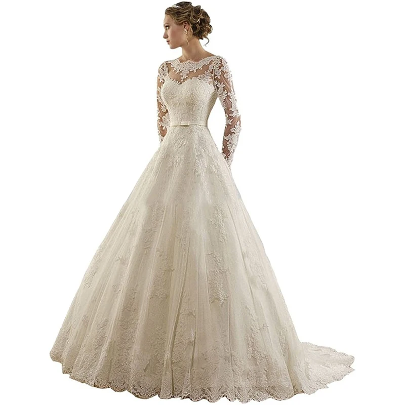 Женское свадебное платье It's yiiya, белое кружевное платье из тюля с длинным рукавом и прозрачным вырезом на лето 2019