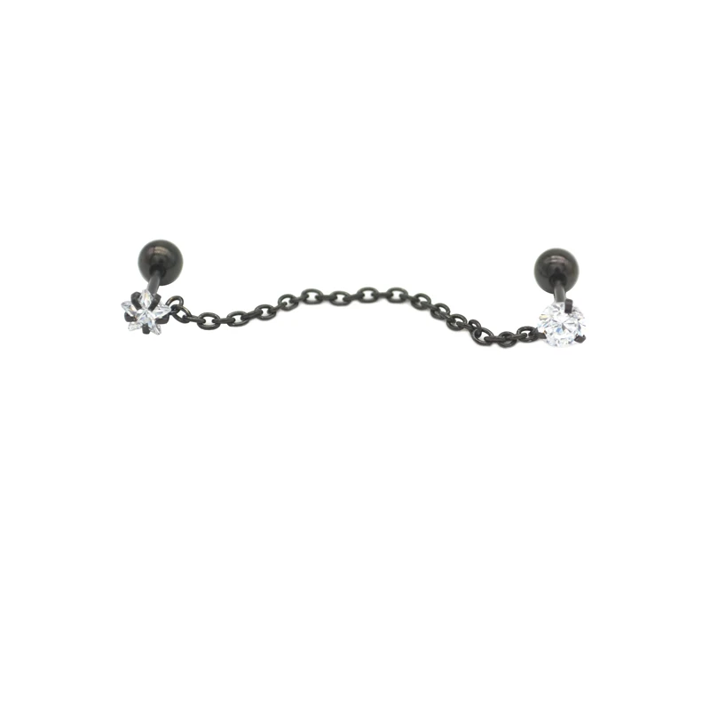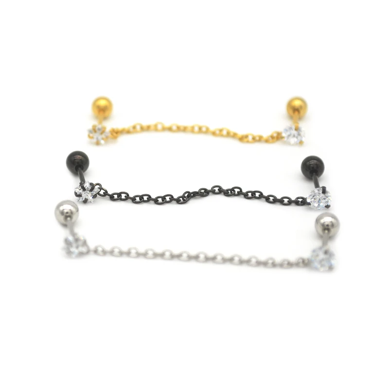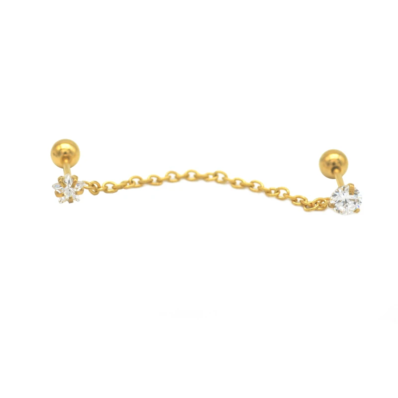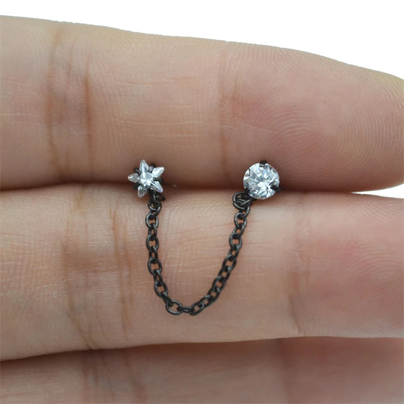 Двойная серьга дырка Длинная цепочка кристалл звезда круглая Ziron для женщин рождественские ювелирные изделия из нержавеющей стали для пирсинга козелка
